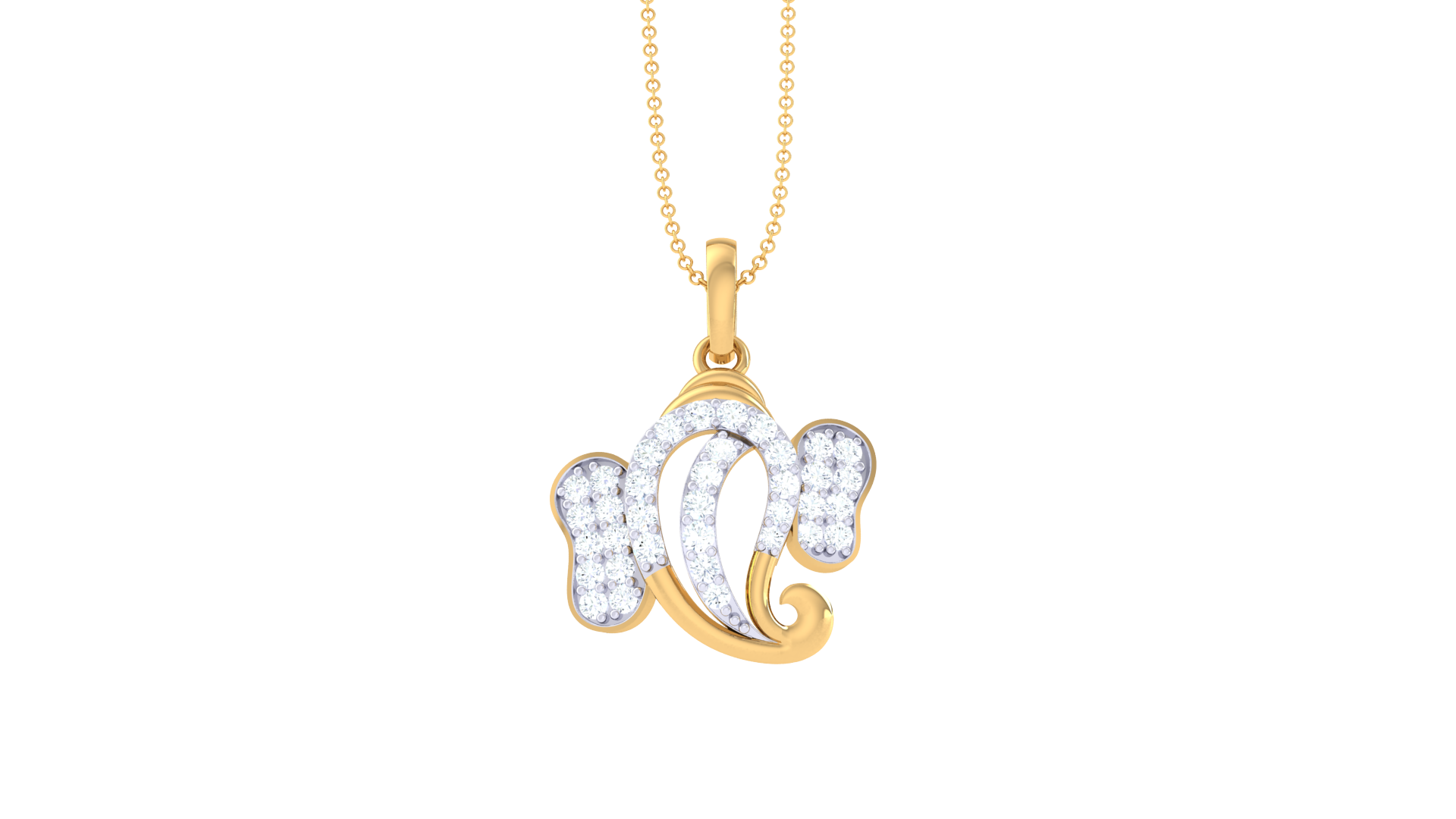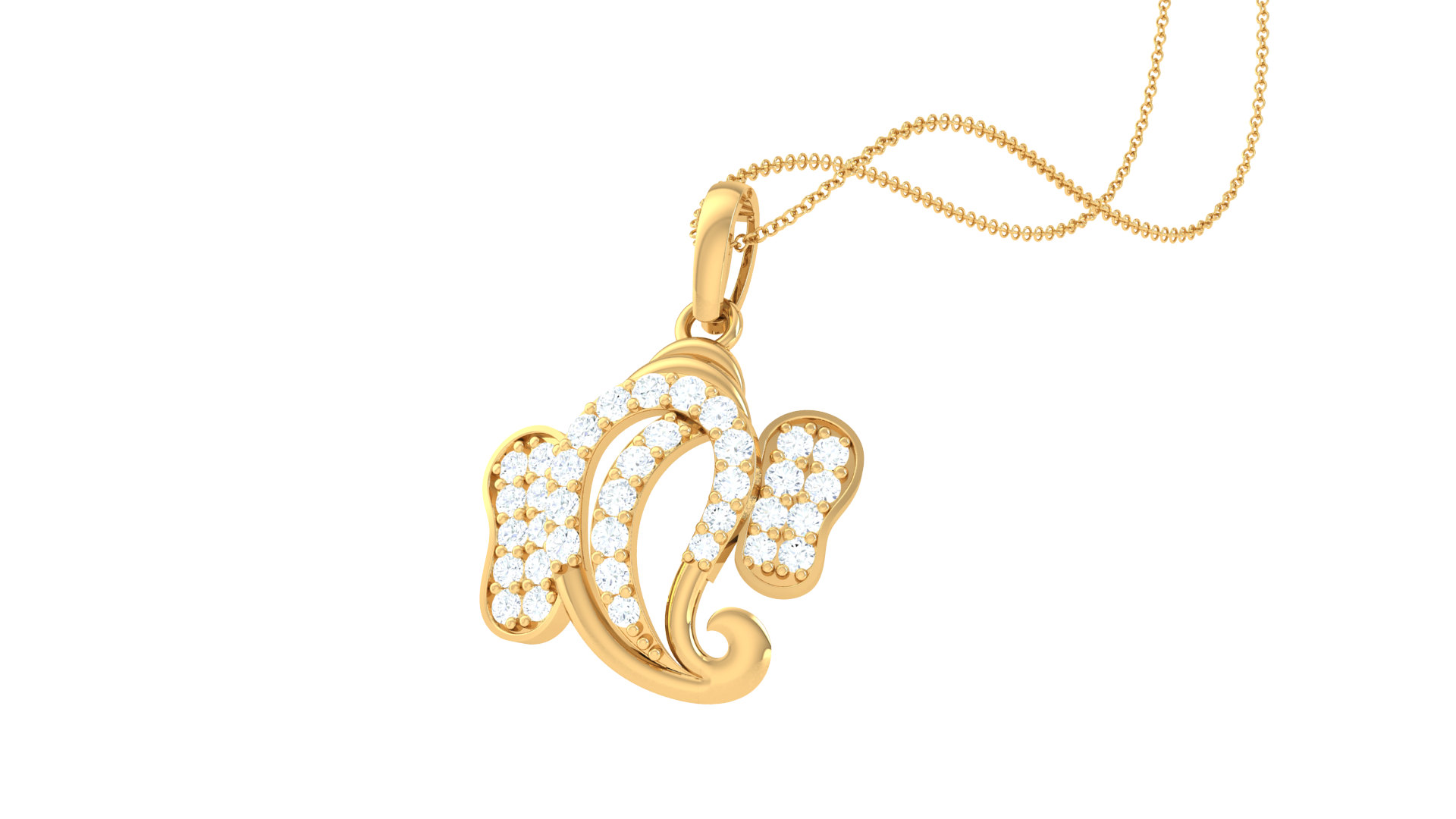 Celebrate divine elegance with this intricately crafted Ganesha pendant, sculpted in 1.01 grams of radiant 18K gold and adorned with 0.25 carats of shimmering diamonds.