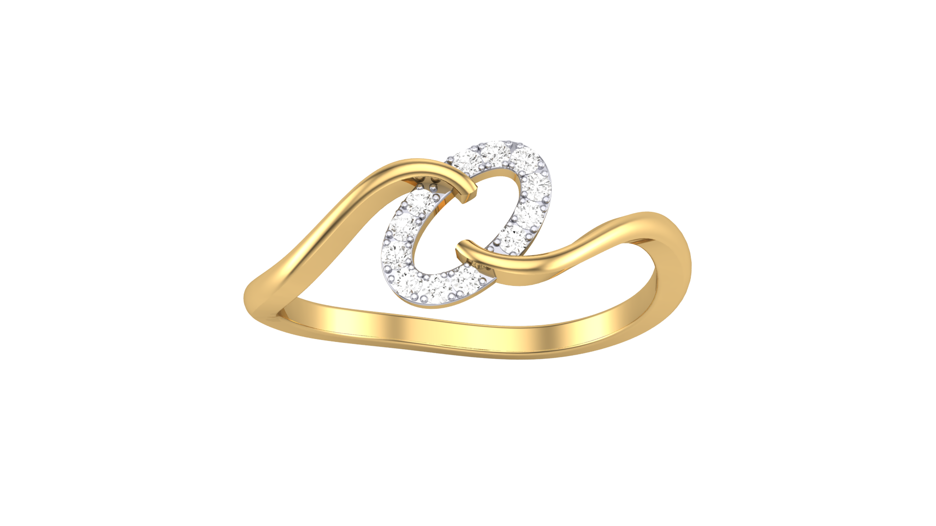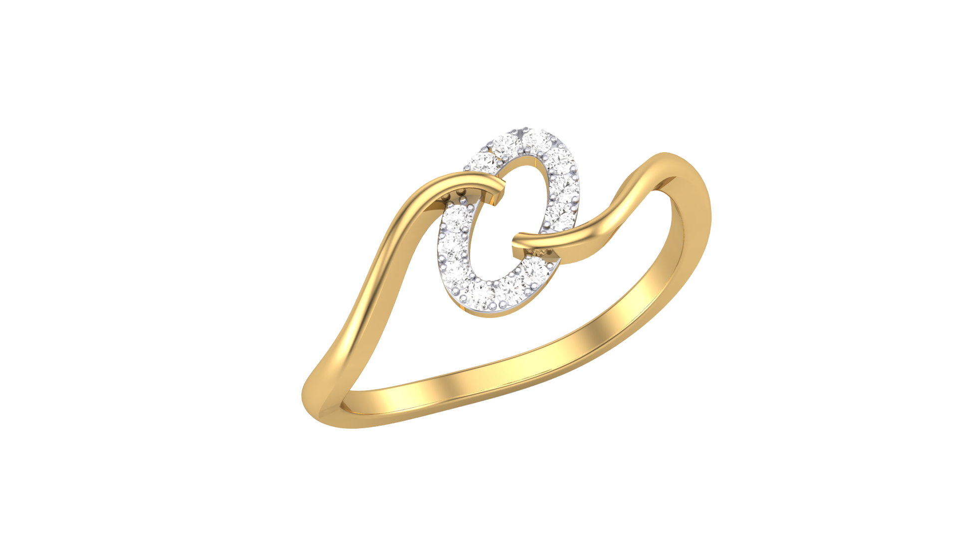 A polished wave-like band flows into an oval-shaped loop encrusted with 0.08 carats of round-cut diamonds, creating a fluid silhouette that catches the light with every movement.