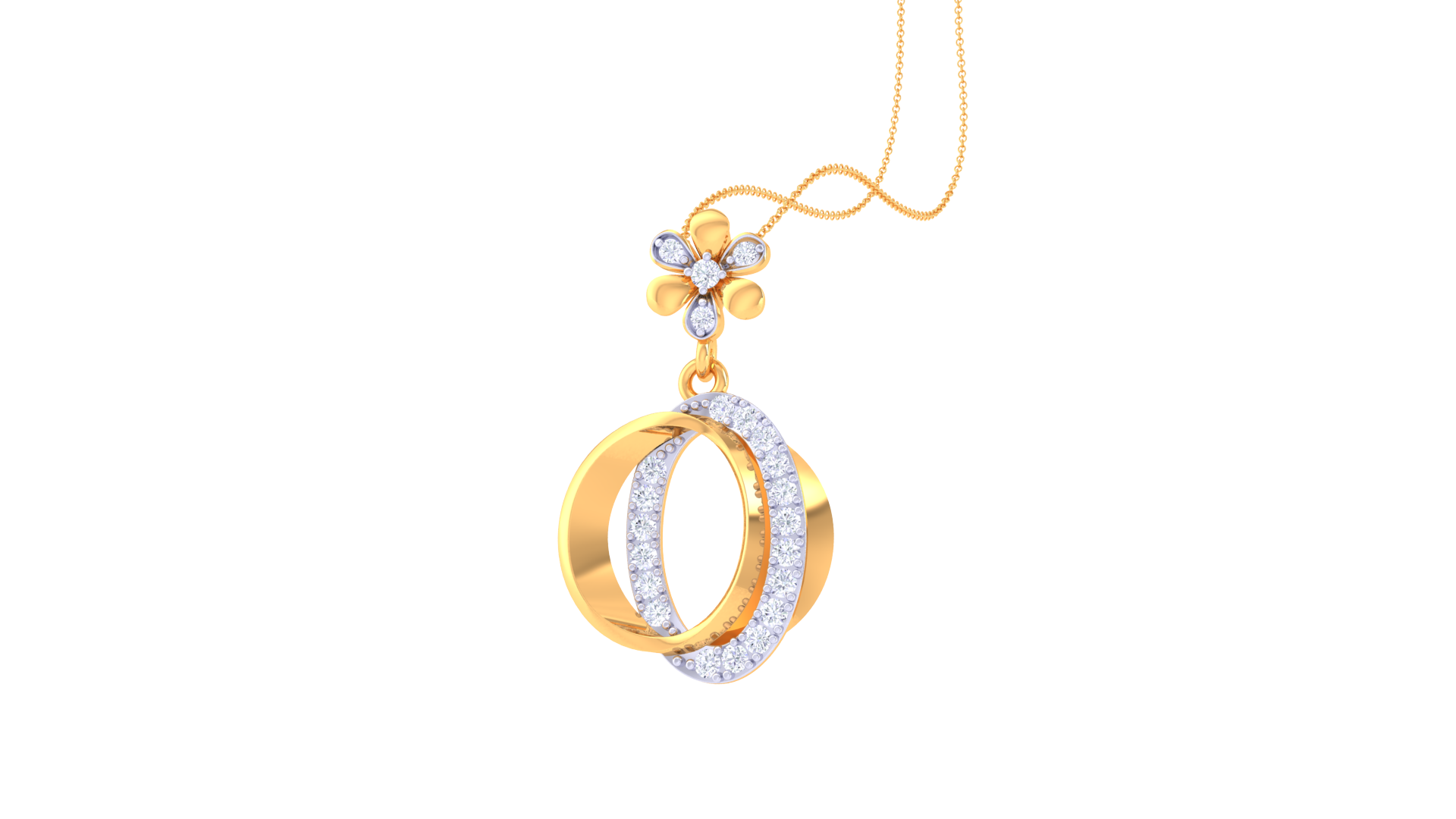 A graceful blend of geometry and nature, this pendant is crafted from 1.86 grams of radiant gold and adorned with 0.26 ct of sparkling diamonds.