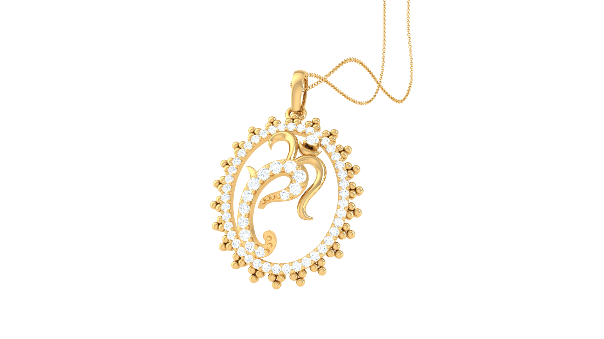 Leaf Motif Circle Pendant in Gold - 0.27 Ct Sparking Diamonds