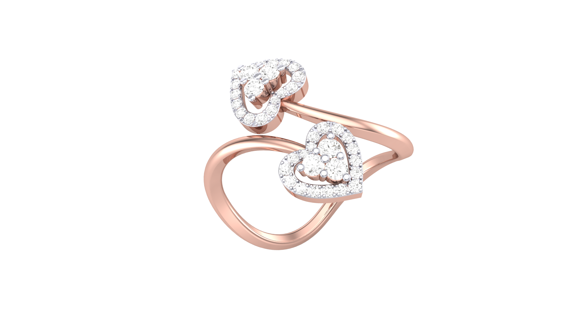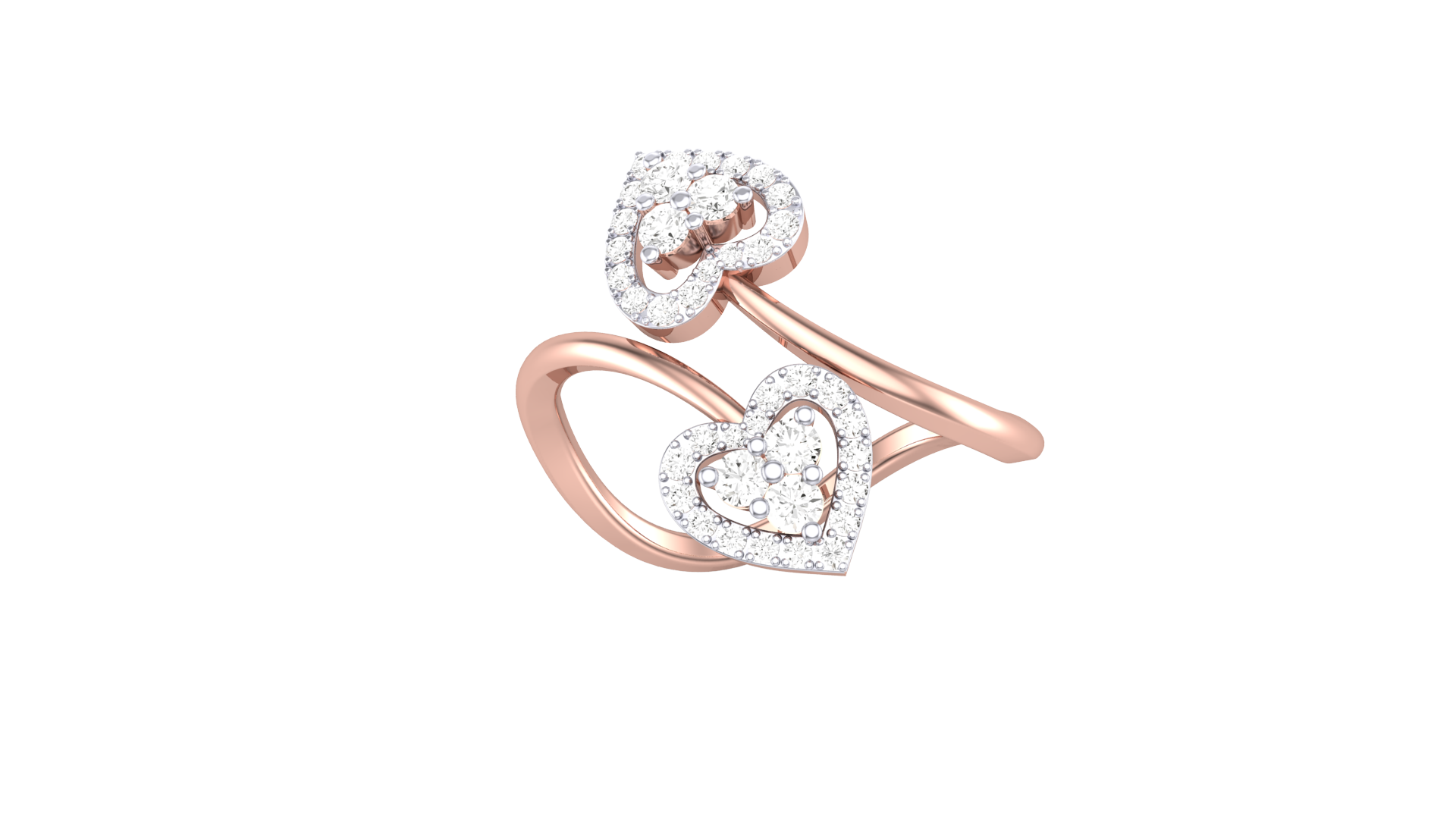 Celebrate love in its most radiant form with this 2.92-gram rose gold ring, gracefully sculpted to cradle two heart-shaped clusters of brilliance.