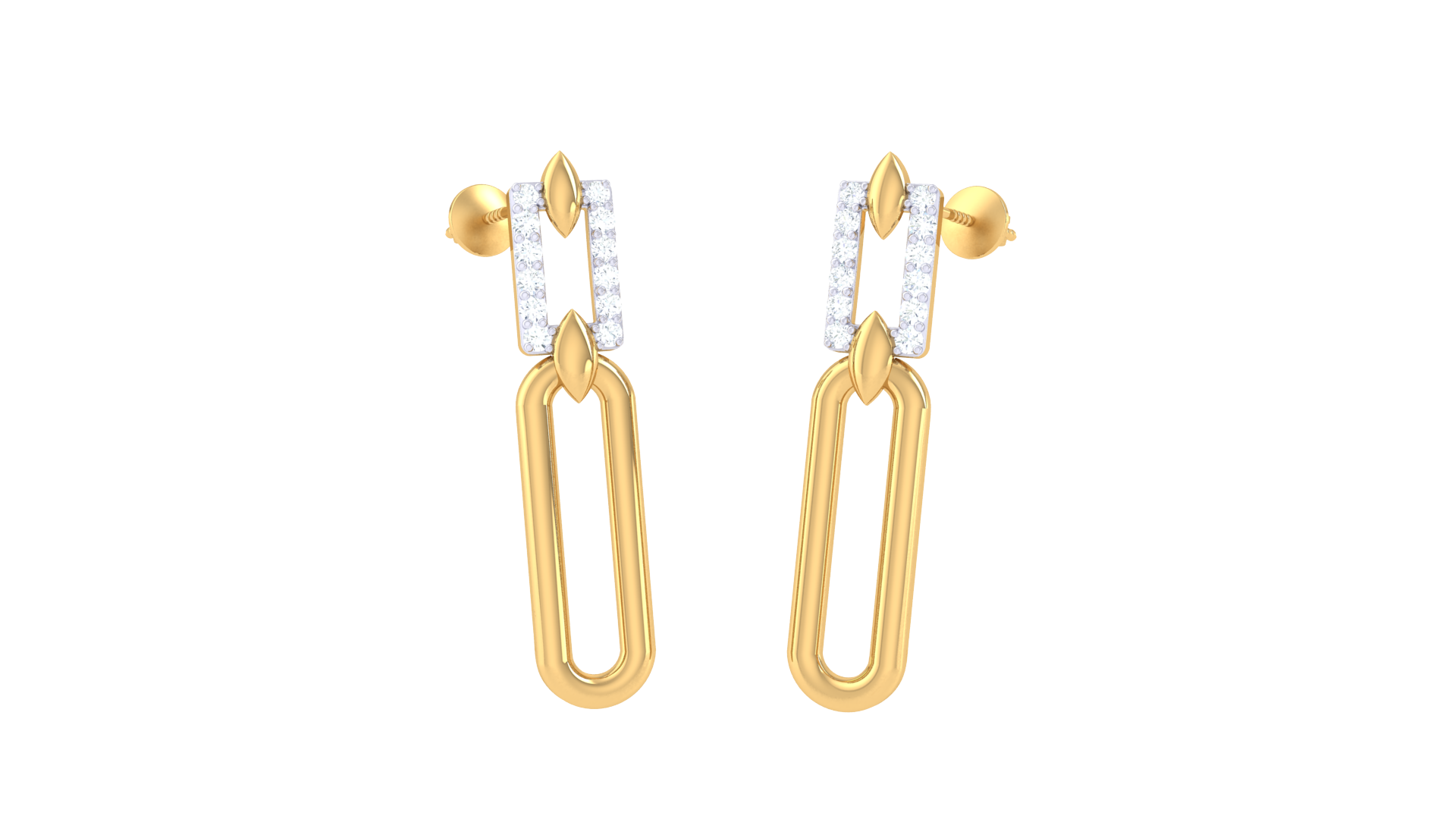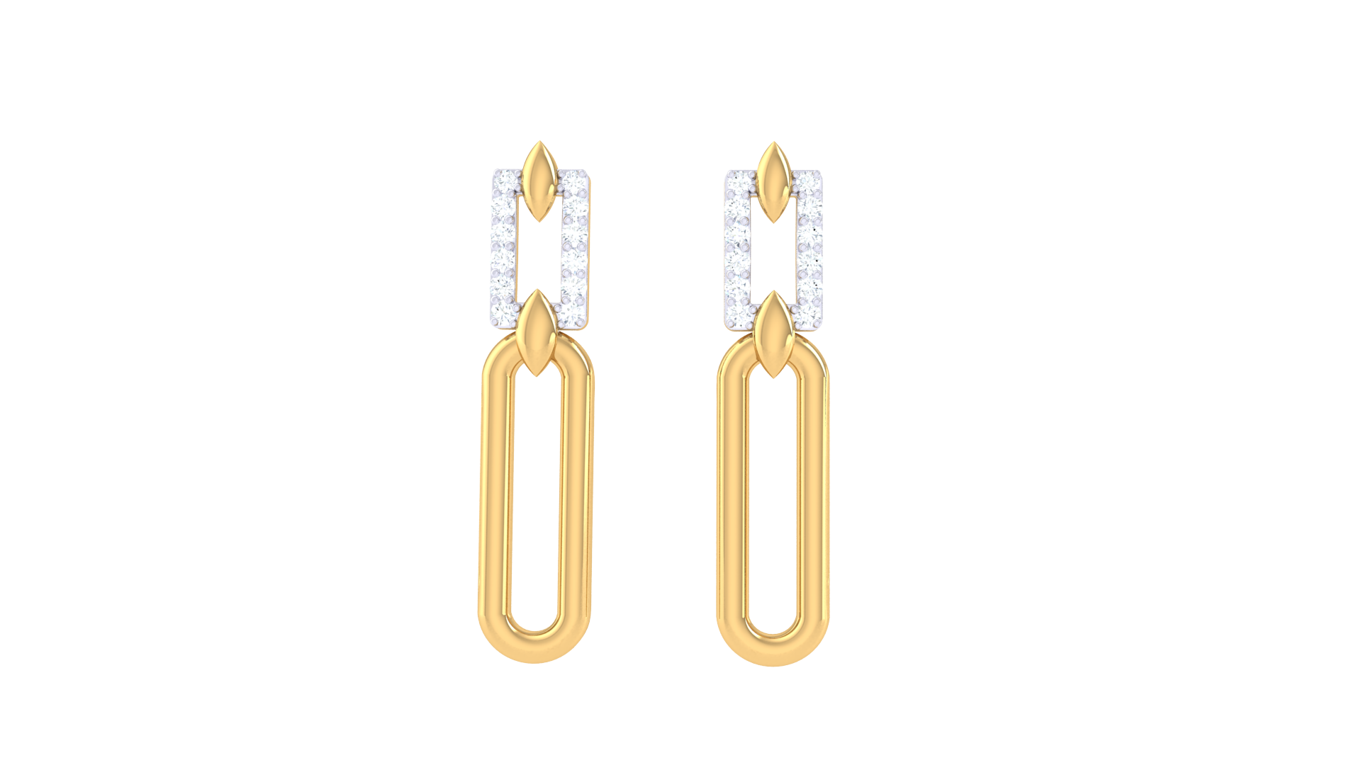 Suspended below is a smooth, elongated oval loop in gold, creating graceful movement and a clean silhouette.