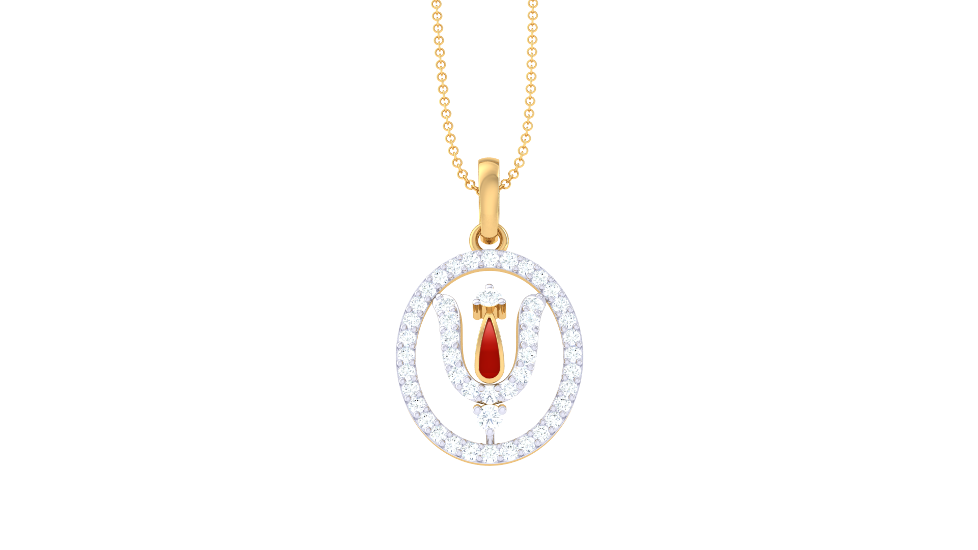 Trishula Charm Golden Pendent - 0.21 Ct Brilliant Diamonds