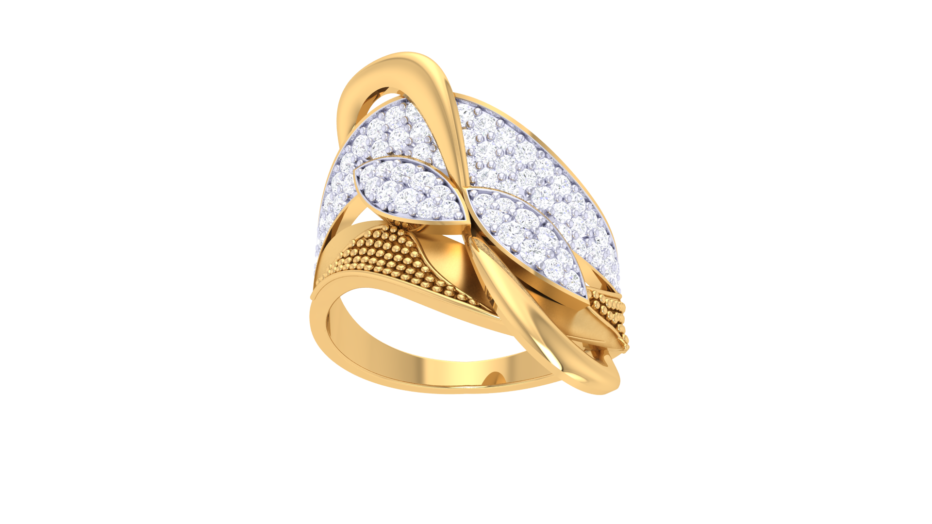 Lumiere Leaf-Embrace Ring In Gold – 0.53 Ct Pave Set Diamonds Adding Textured Elegance with Organic Radiance