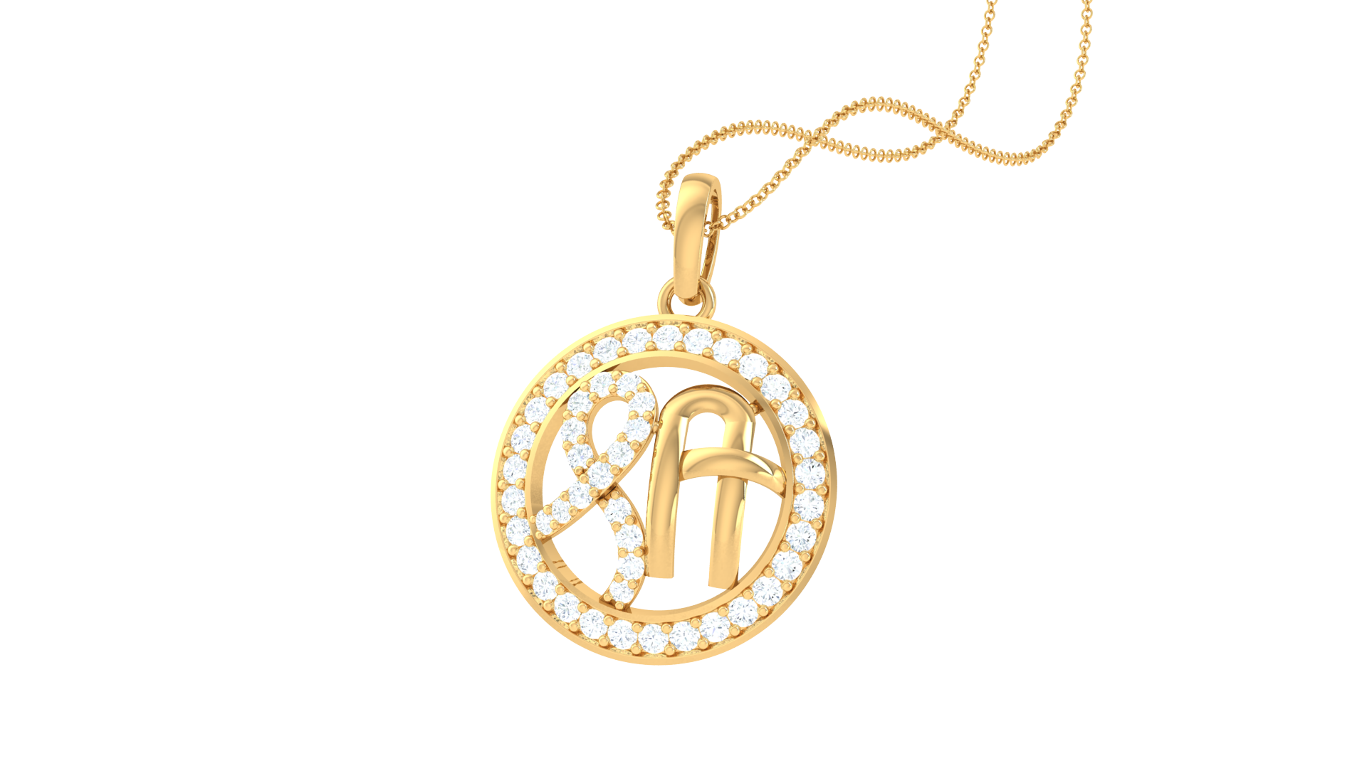 Elegantly personalized and rich in detail, this pendant is crafted from 0.96 grams of lustrous gold and showcases a circular frame encrusted with 0.27 carats of dazzling diamonds.