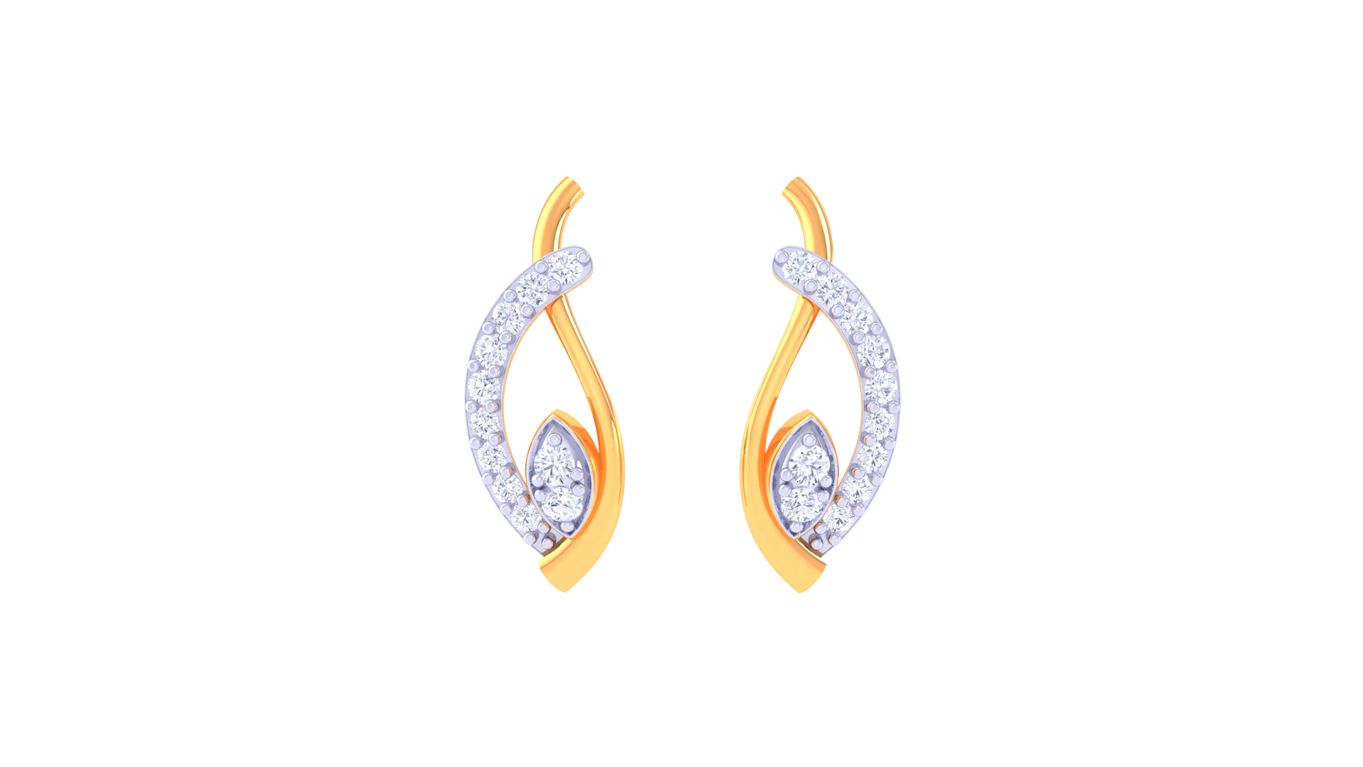 Flame Curve Stud Earrings In Gold - 0.18 Ct Brilliant White Diamonds