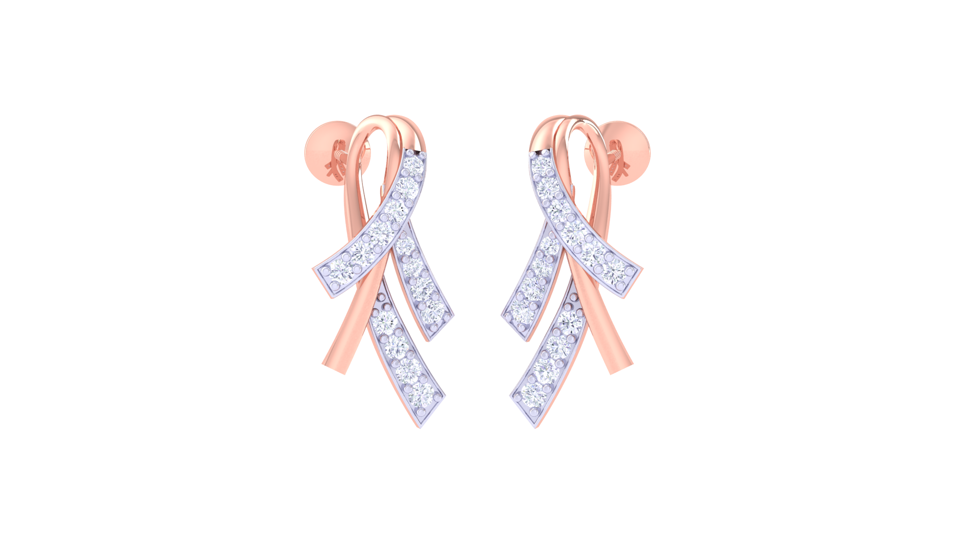 The design features gracefully looping gold elements embracing linear rows of white diamonds totaling 0.21 carats, set in contrasting silver-toned arcs.