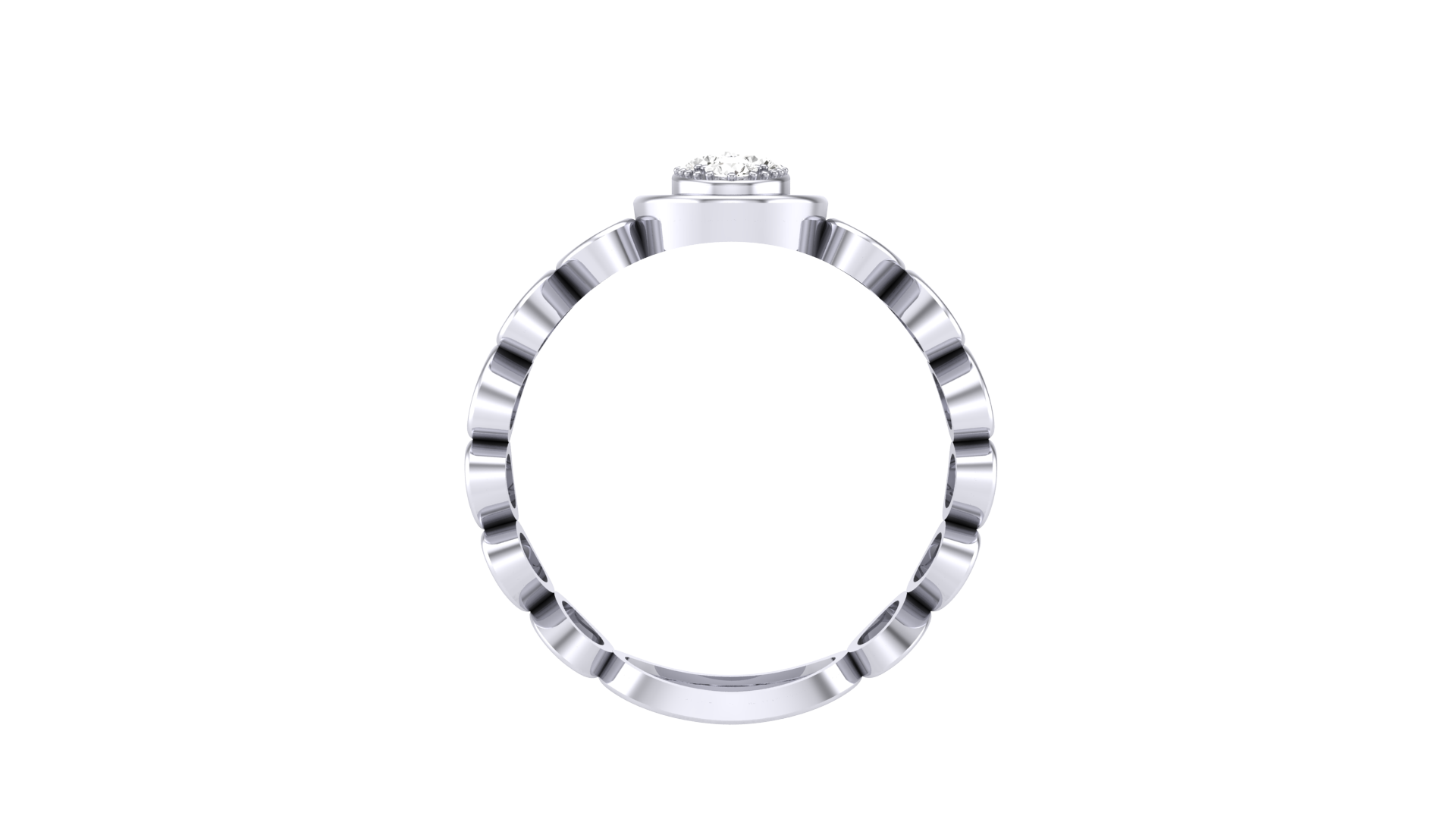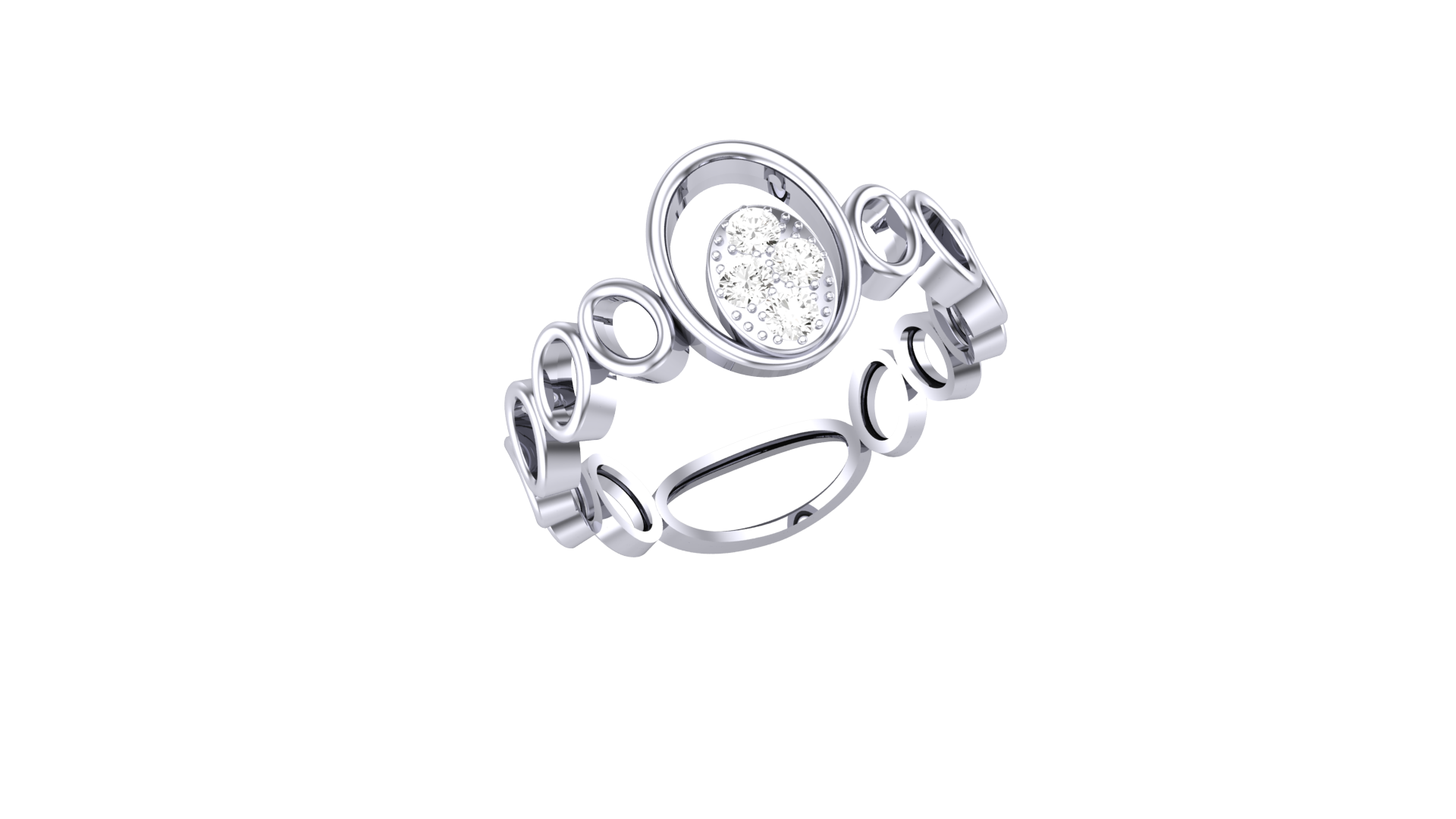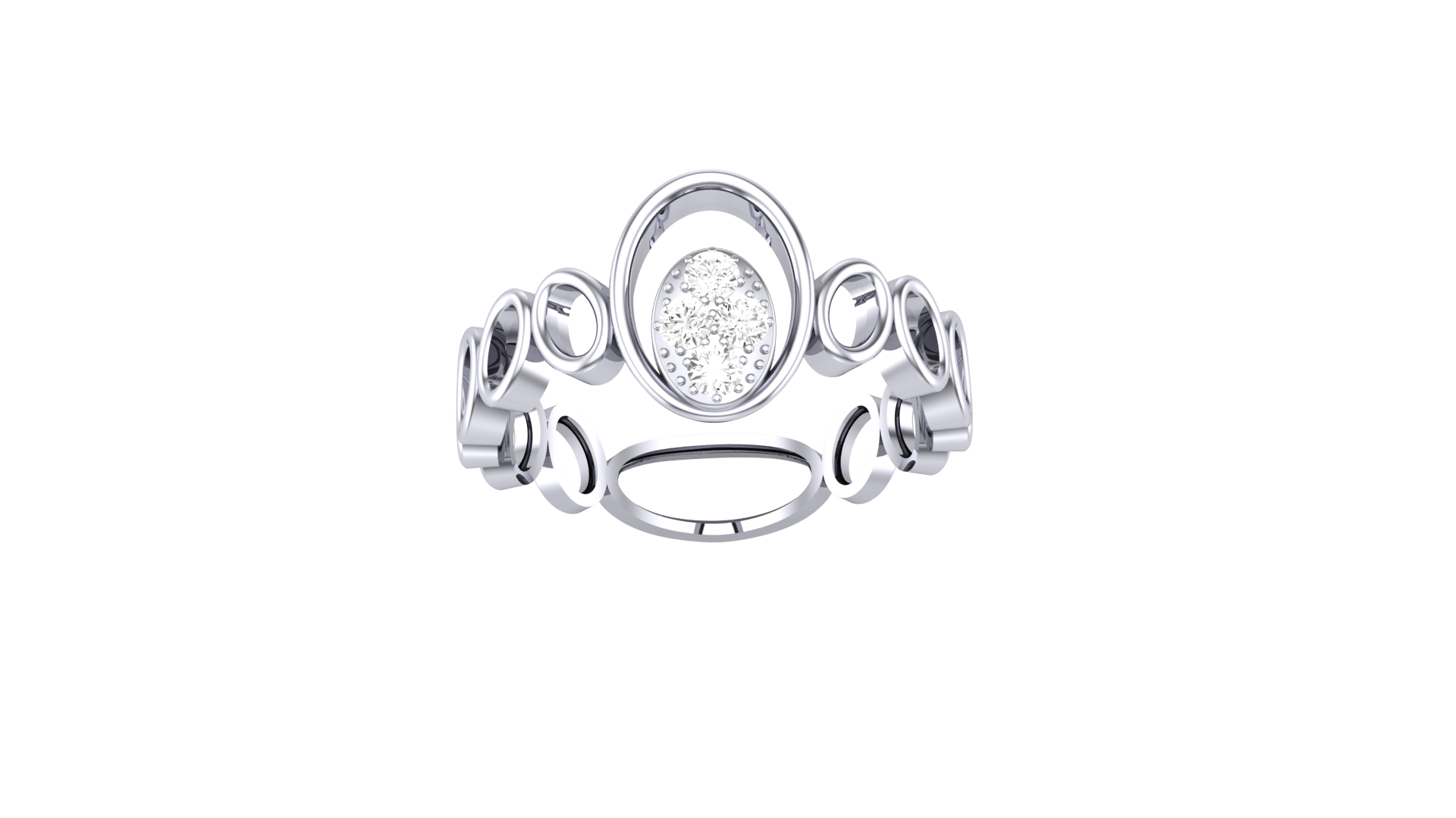 At its heart lies a luminous cluster of 0.10 carats of round-cut diamonds, nestled within a bold oval setting that draws the eye with effortless charm.