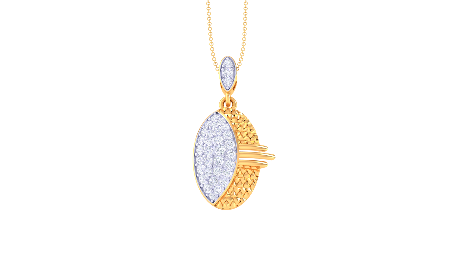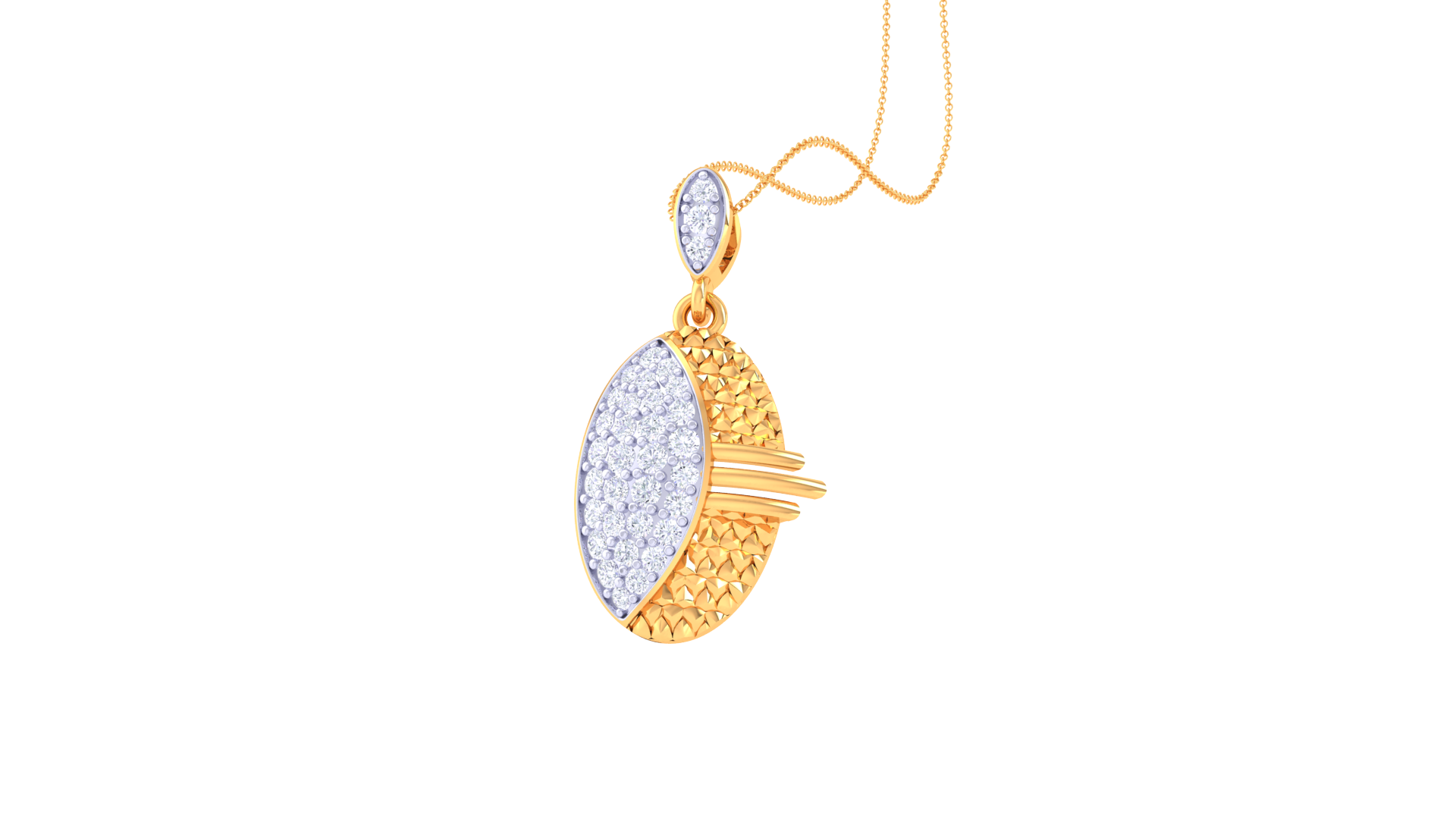 0.35 Ct Diamond Oval Pendant In Gold – Textured Brilliance and Timeless Elegance.