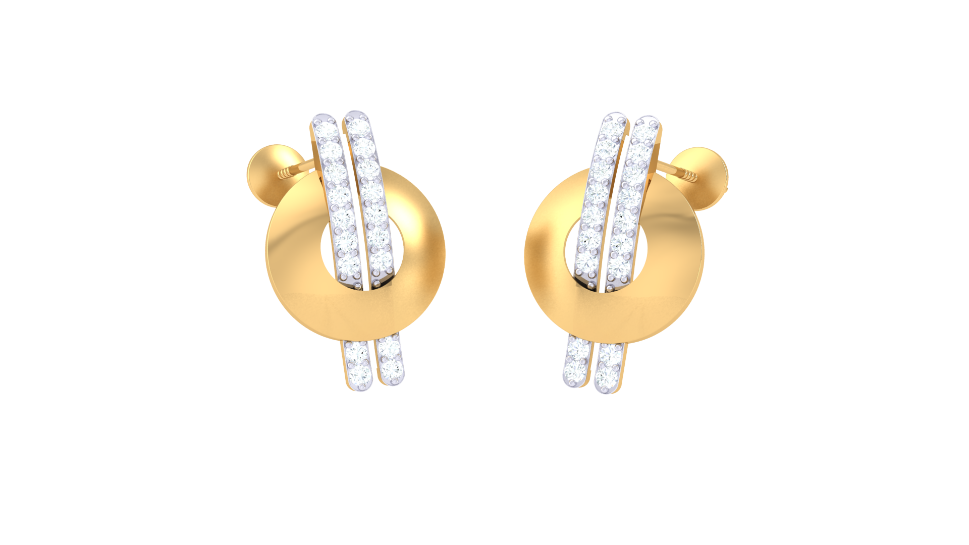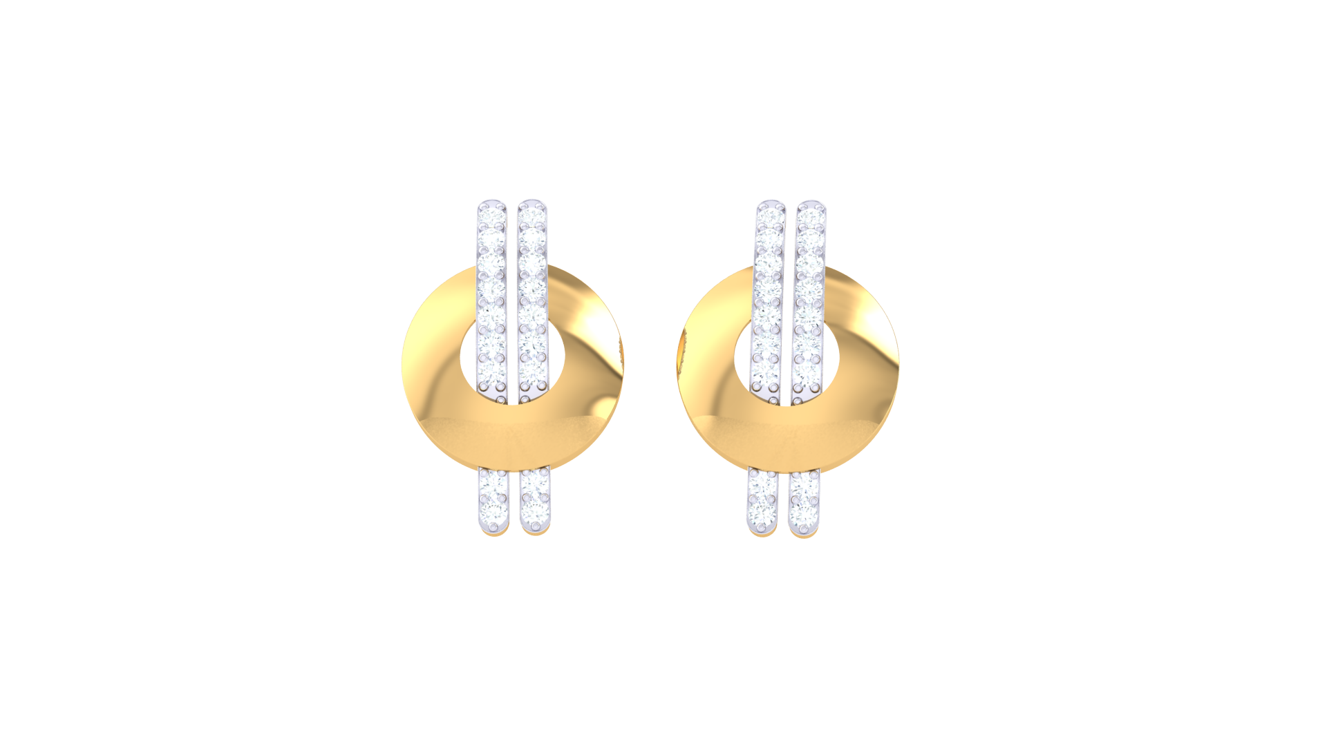 Vertical Bar Earrings With Gold Circular Base - 0.23 Ct Diamonds