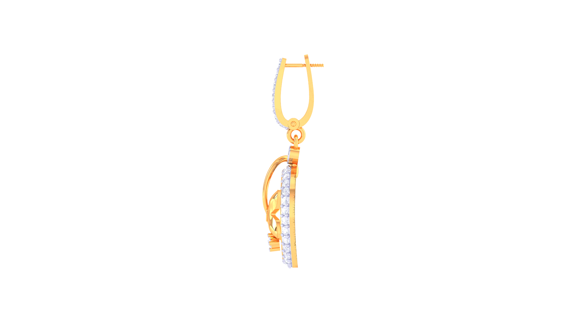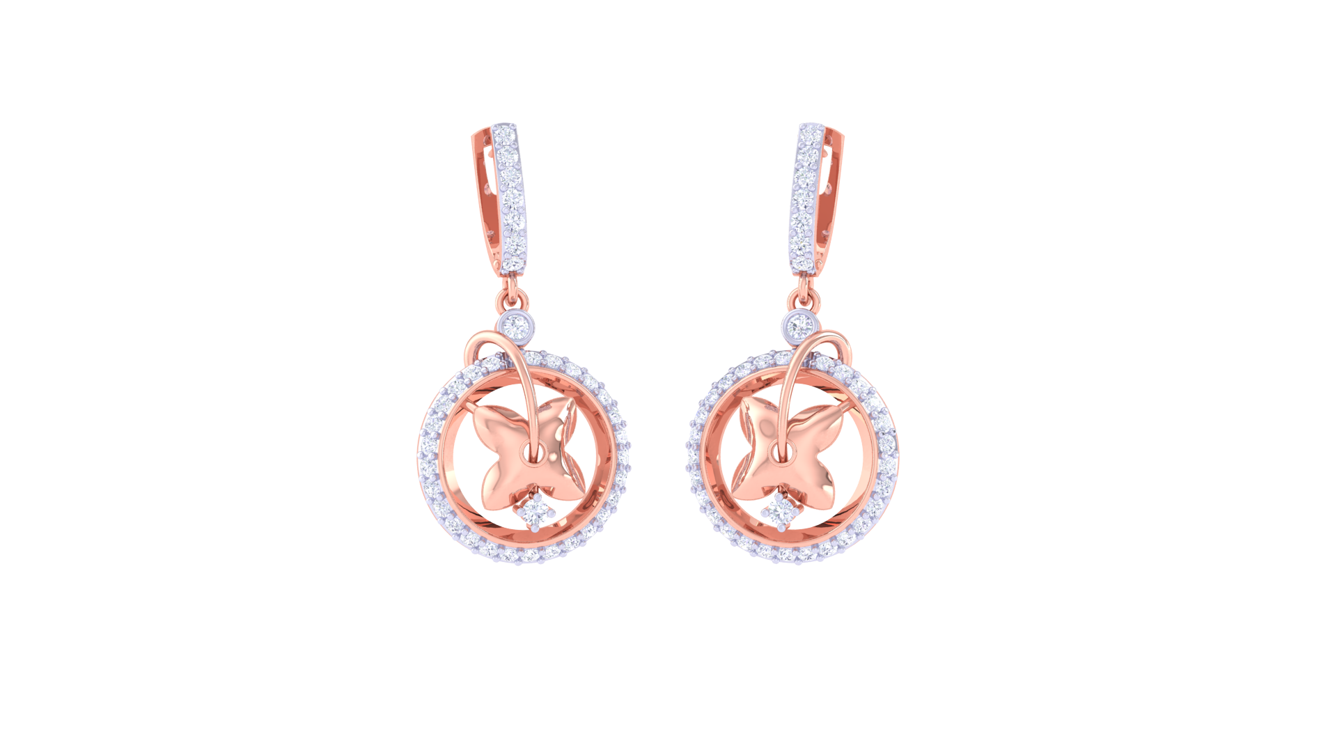 Suspended from a diamond-studded vertical bar, the design offers graceful movement and captivating sparkle.