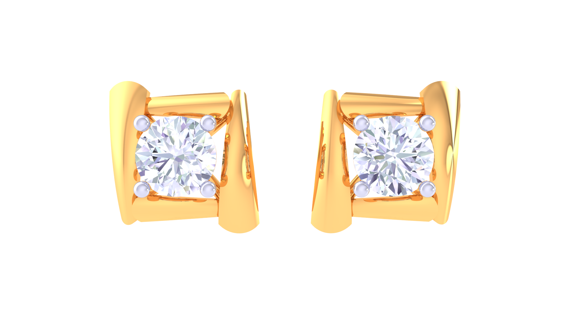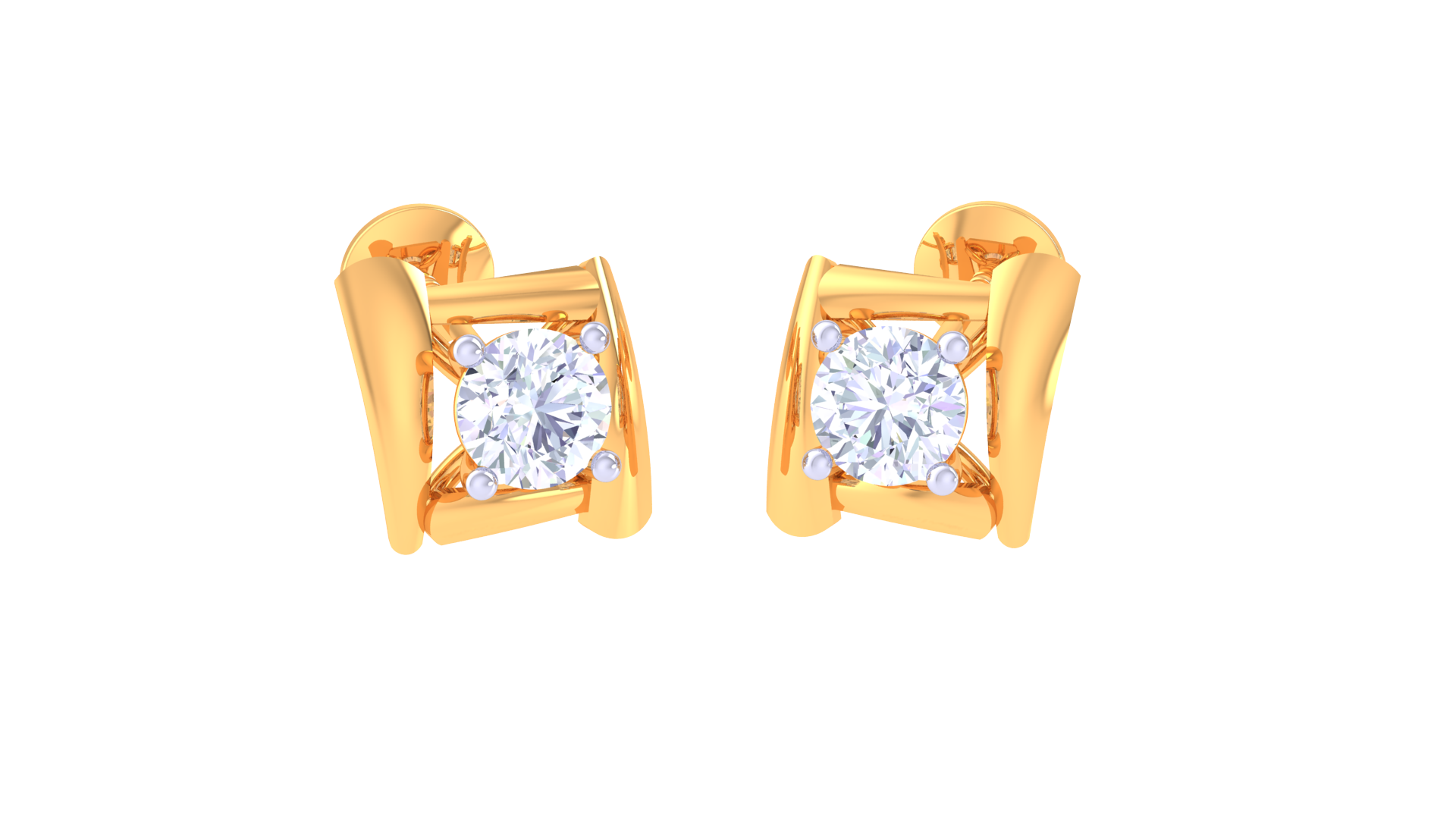 Refined and radiant, these cushion-frame gold stud earrings feature a brilliant 0.35 carat round-cut diamond at their heart—each stone securely nestled within a softly contoured square setting.