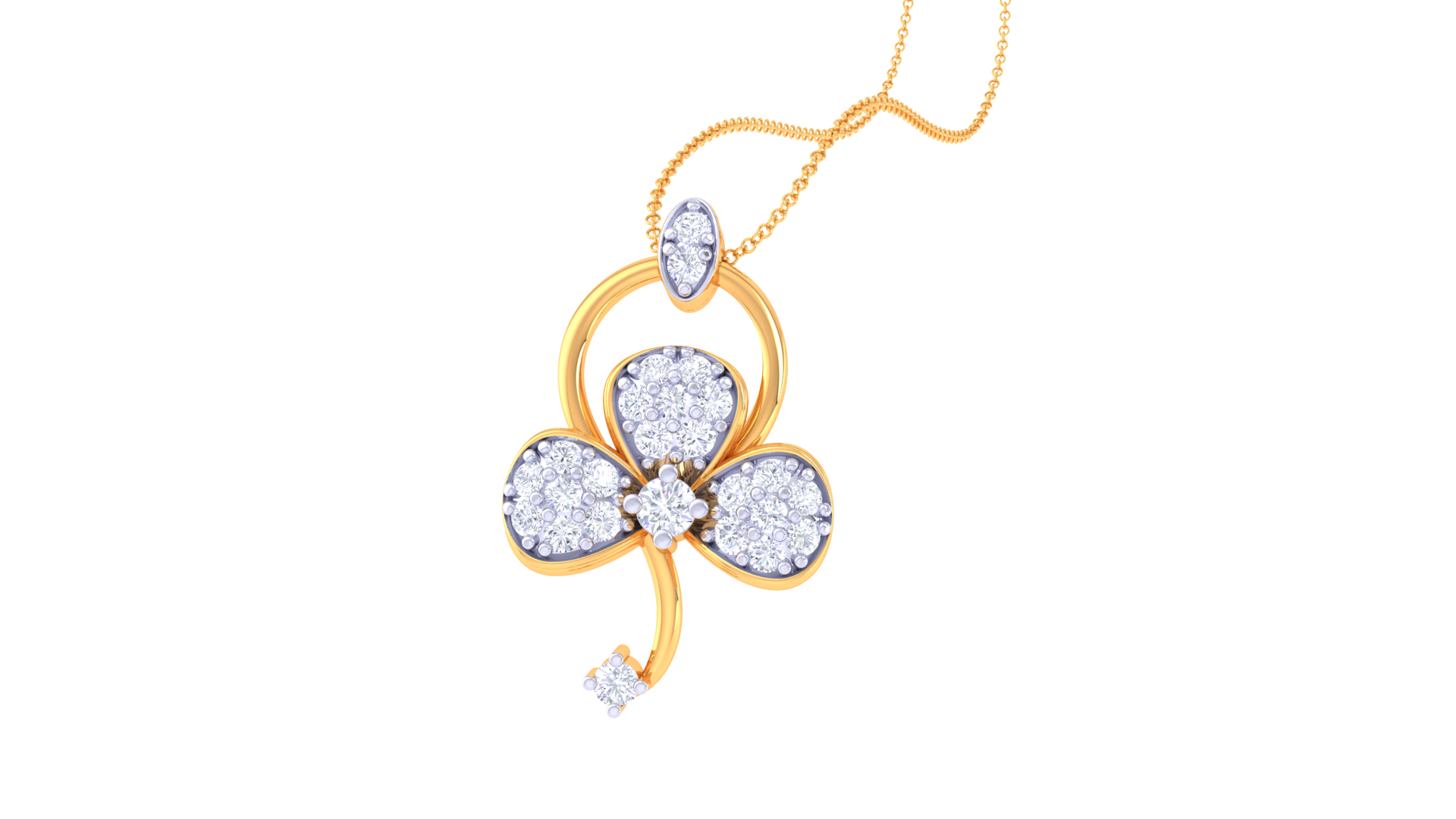 0.24 Ct - Cute Floral Diamond Pendent In Gold