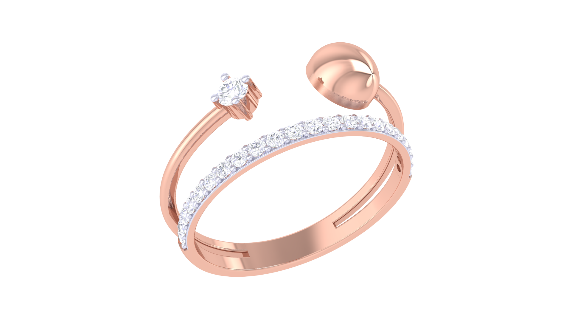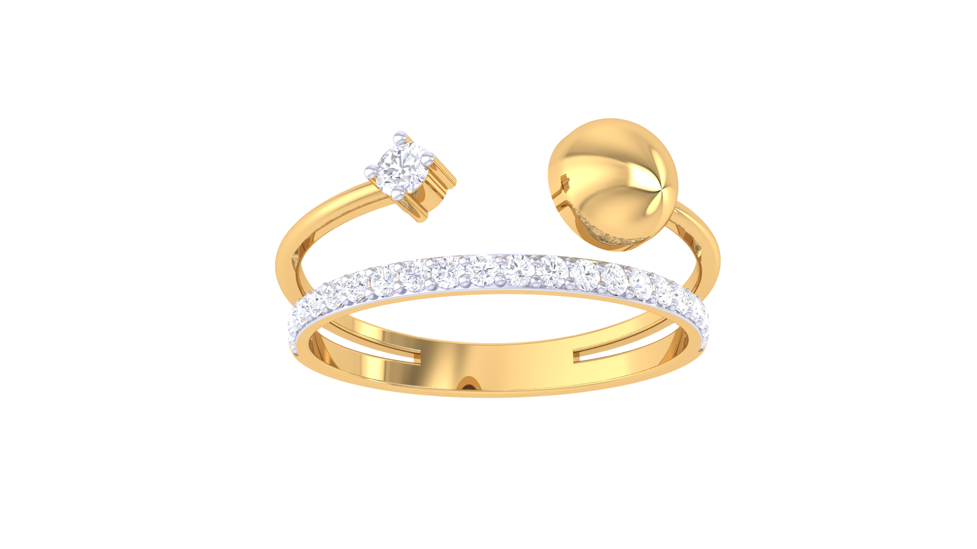 Iconique Open-Band Ring In Yellow Gold – 0.17 Ct Pave Set Diamonds With Sculptural Contrast with Dome & Solitaire Spark