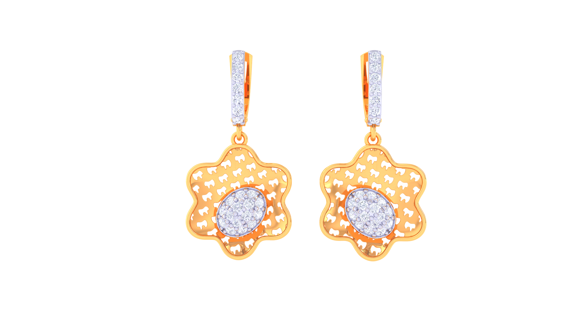 Crafted in 3.72 grams of polished gold, each earring features a petal-shaped silhouette with intricate cutwork that evokes the beauty of blooming flowers.