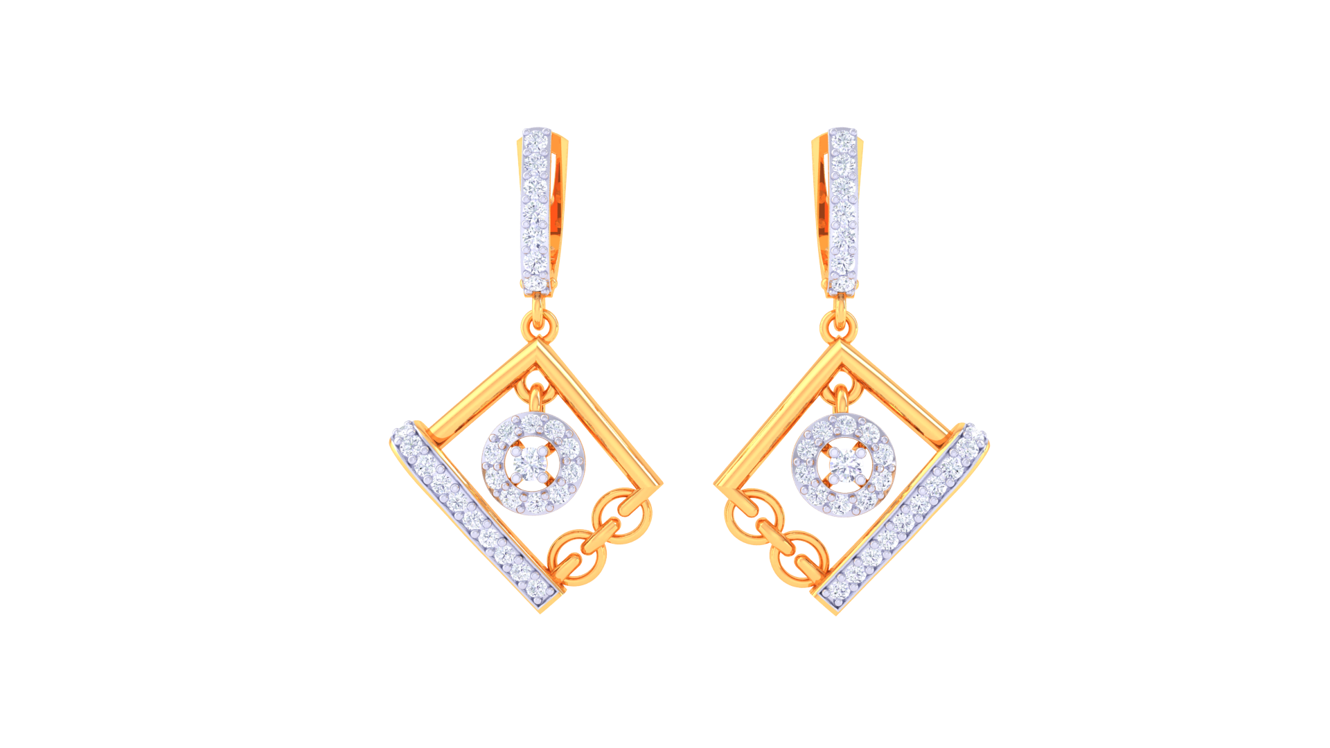 Crafted in 4.24 grams of gold, these geometric drop earrings blend modern artistry with timeless sparkle.