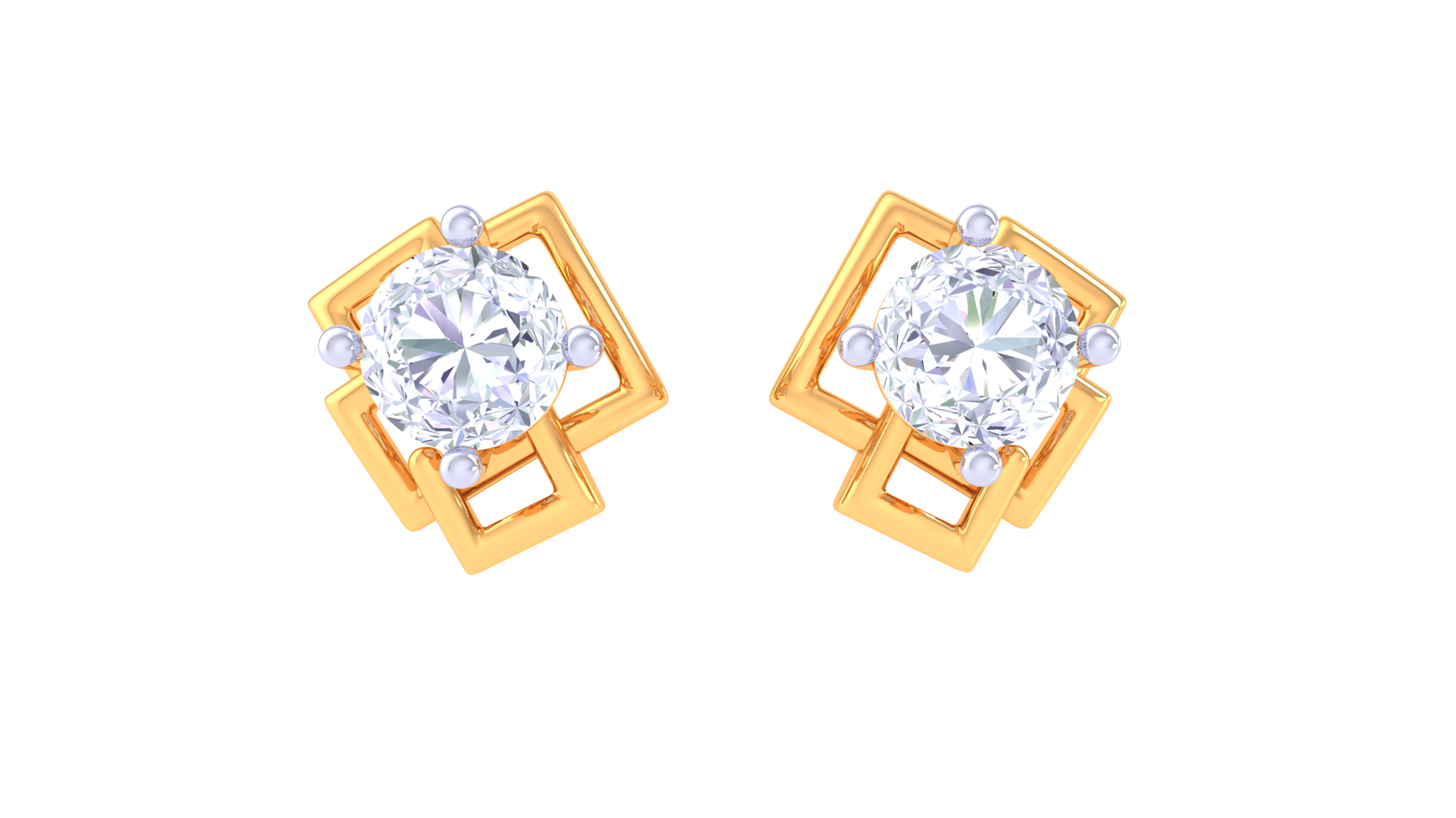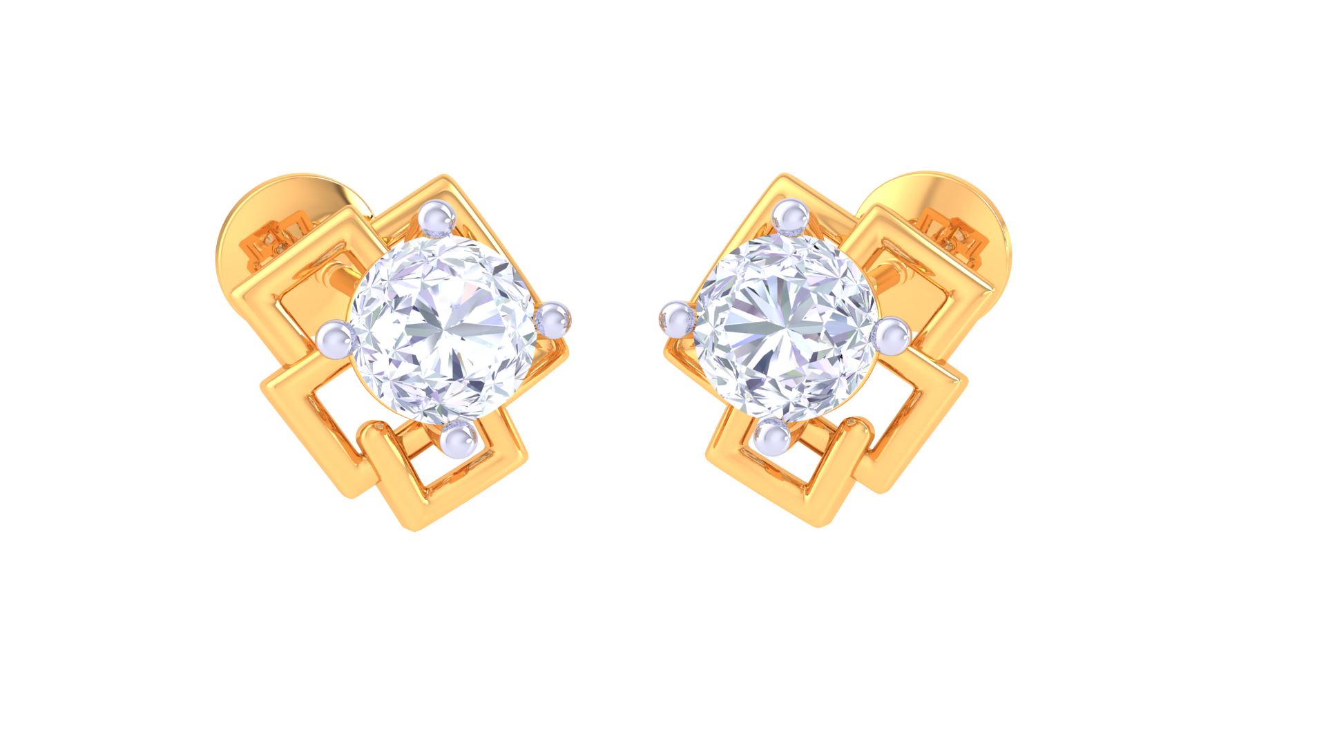 Each earring showcases a brilliant 0.39 carat round-cut diamond, perfectly set within angular interlocking frames crafted from 1.60 grams of lustrous gold.