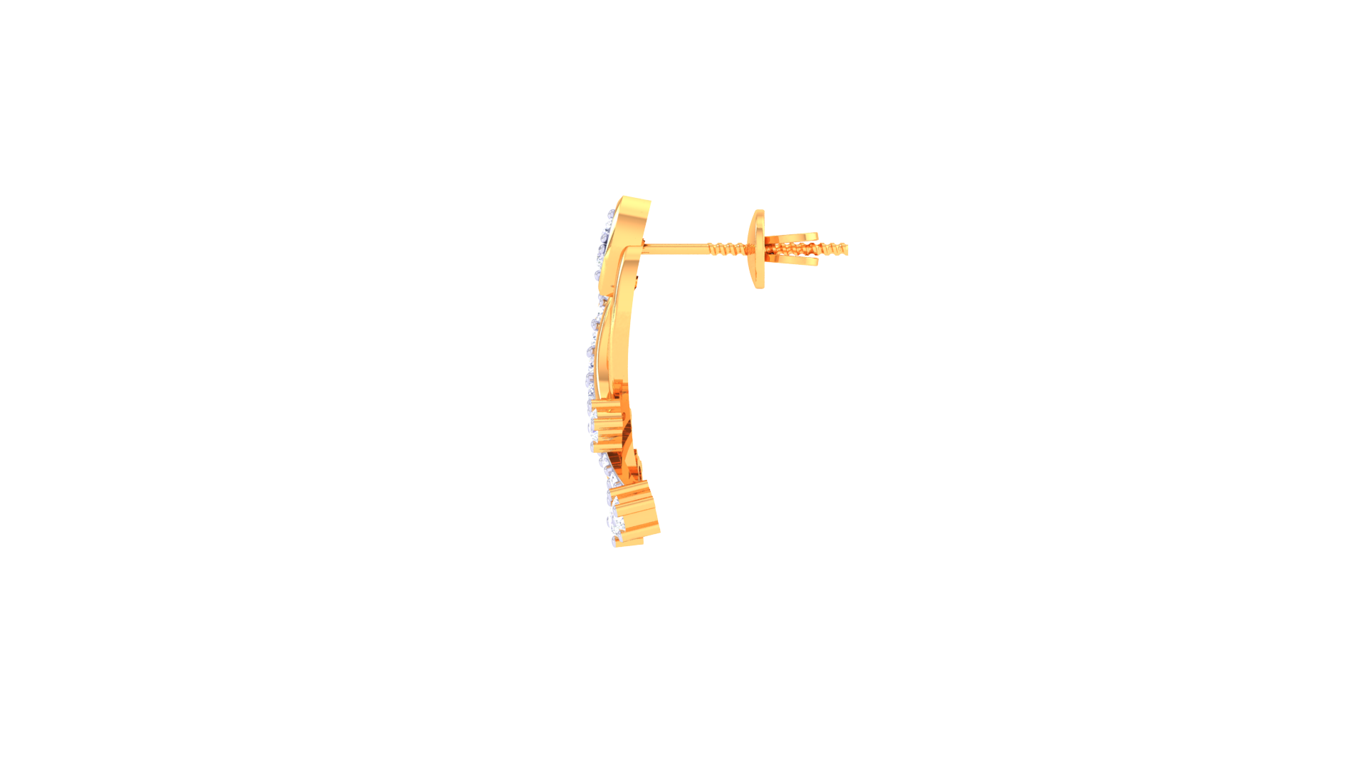 Elegantly sculpted in 18K gold weighing 2.27 grams, these earrings feature a graceful vine-like silhouette adorned with 0.30 carats of sparkling white diamonds.