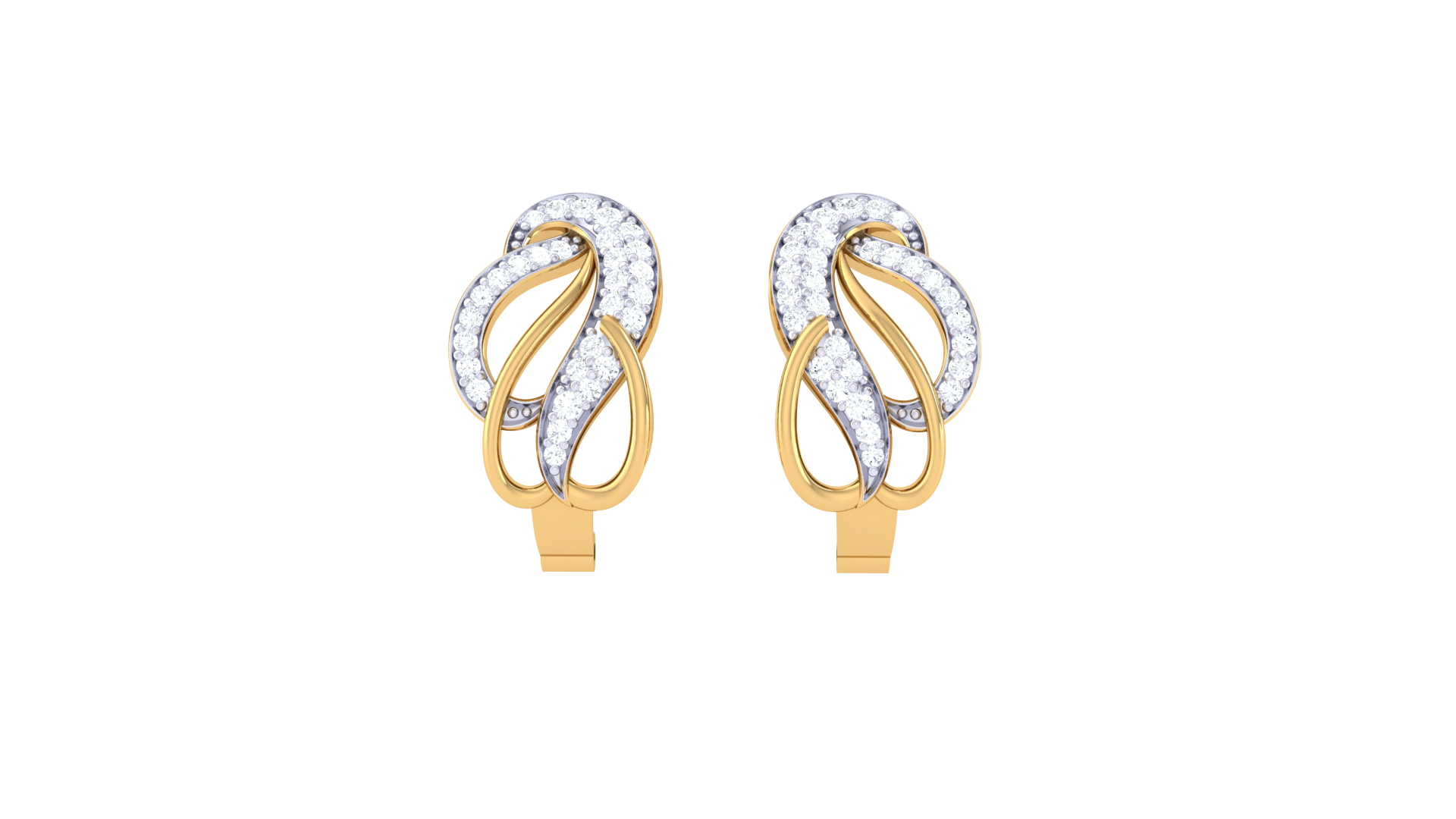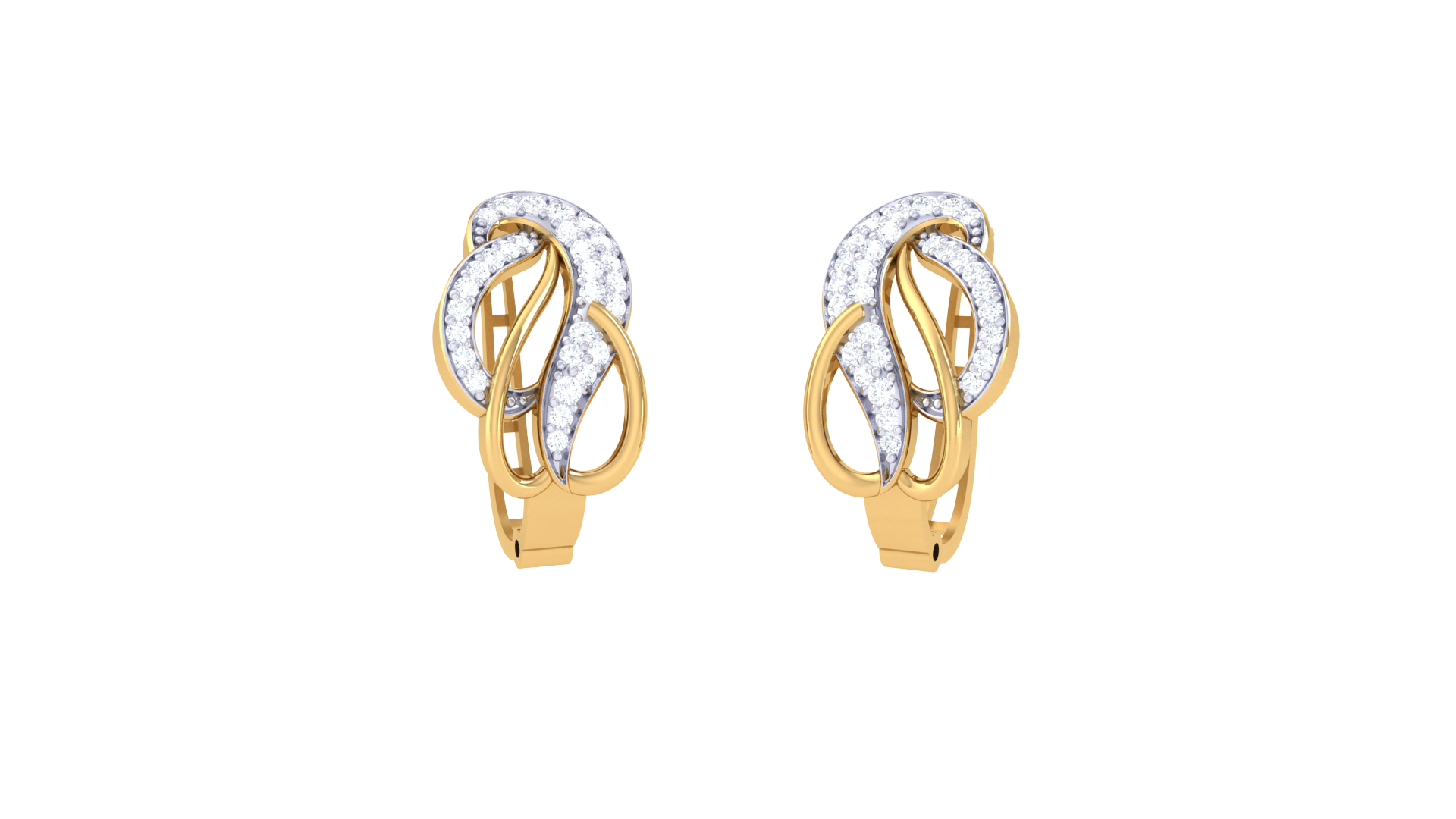 The design features graceful gold loops that curve into a stylized leaf-like pattern, accented with 0.34 carats of shimmering diamonds.