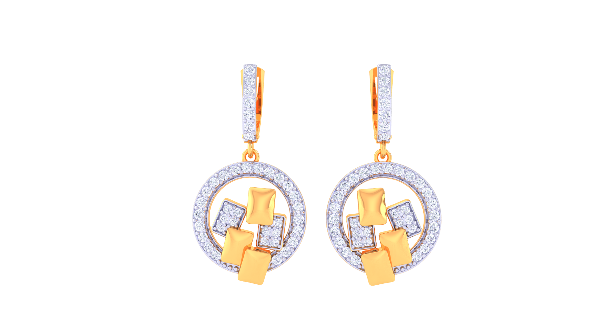 Crafted in 4.91 grams of gold, these circular drop earrings offer a striking fusion of geometry and sparkle.