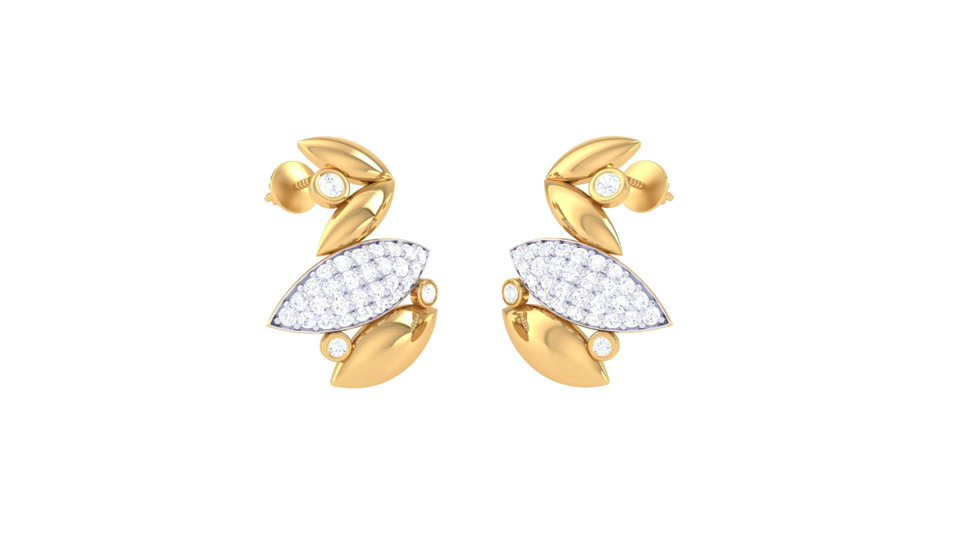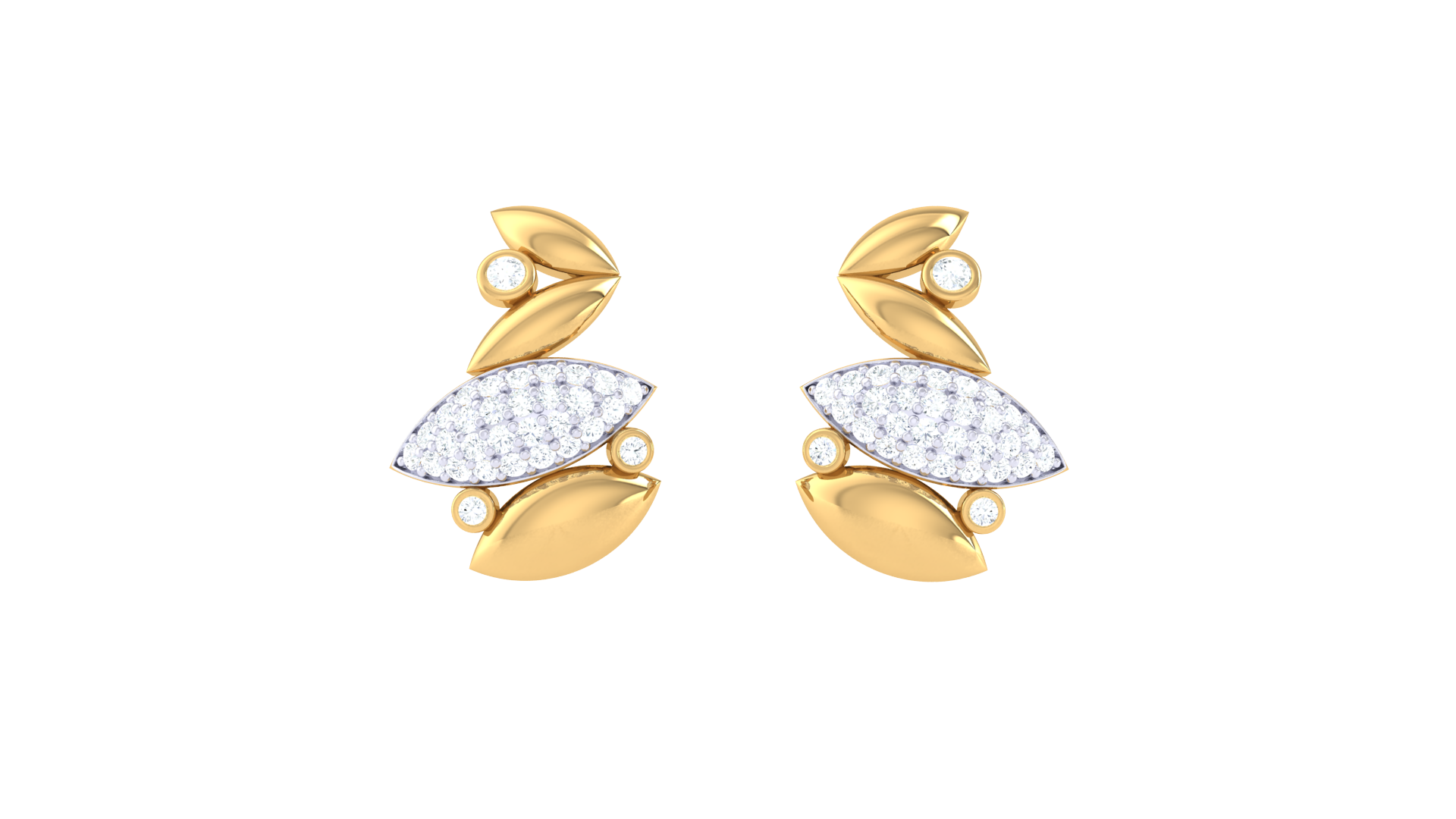 Dew Leaf Diamond Stud Earrings In Gold - 0.15 Ct