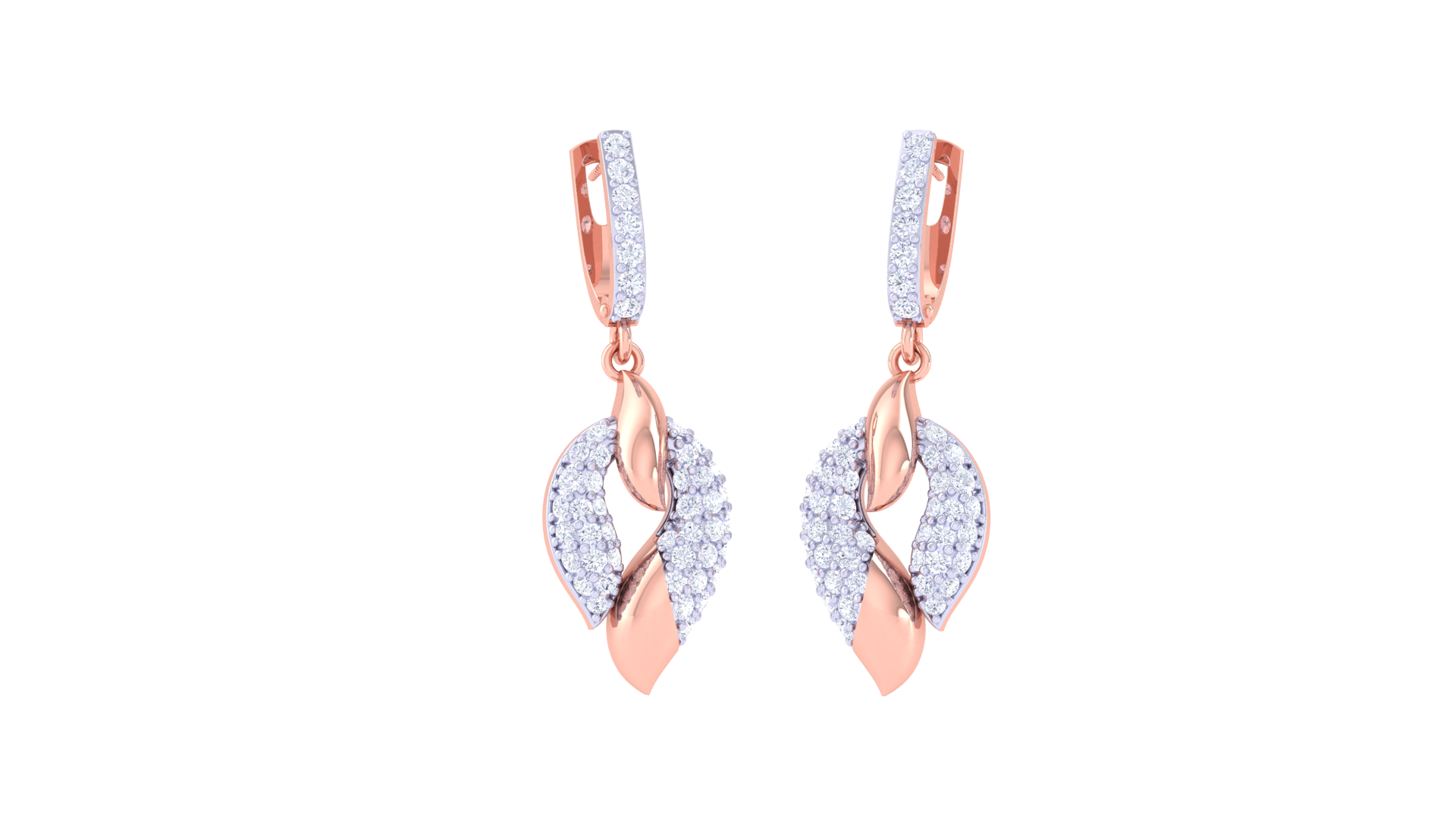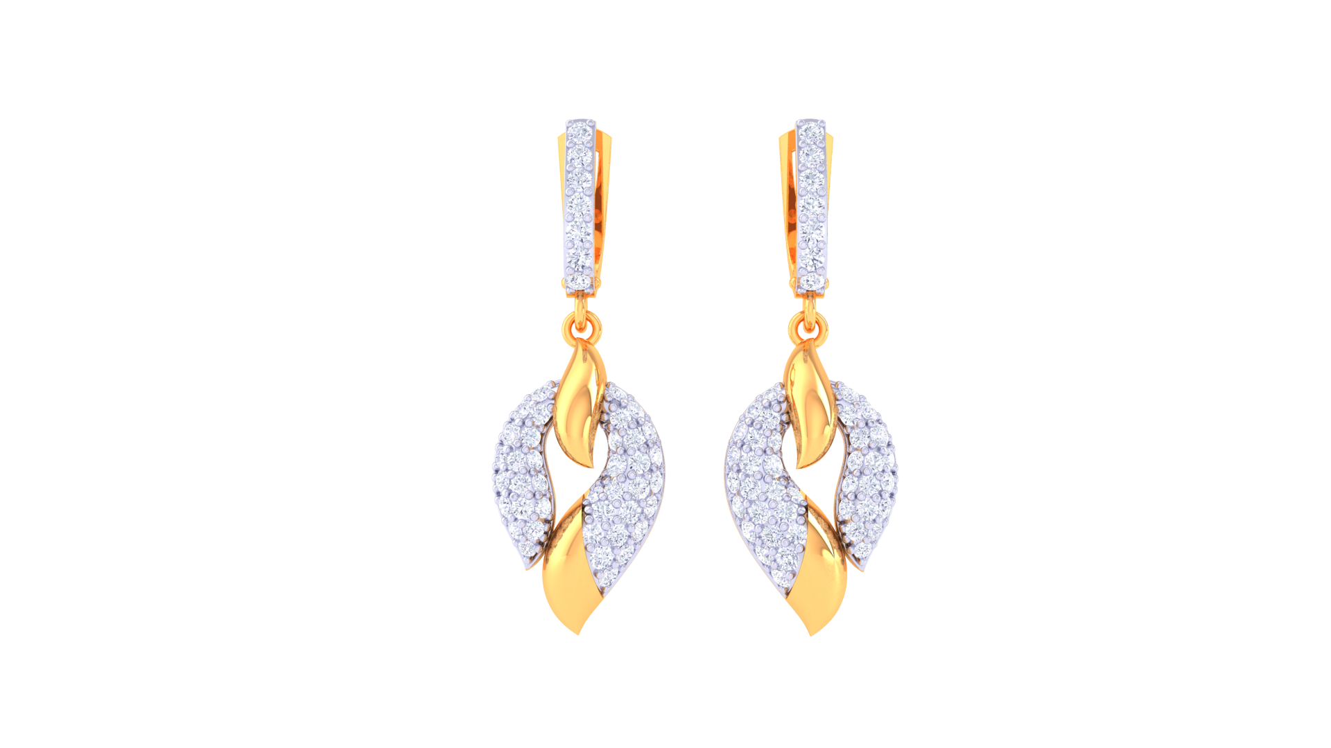 Gracefully crafted in 3.71 grams of polished gold, these earrings feature a fluid, leaf-like silhouette that blends organic elegance with modern sparkle.