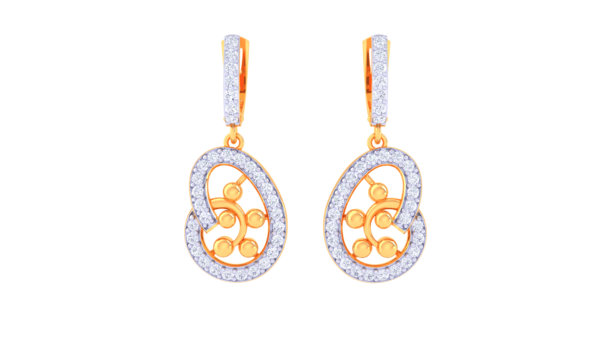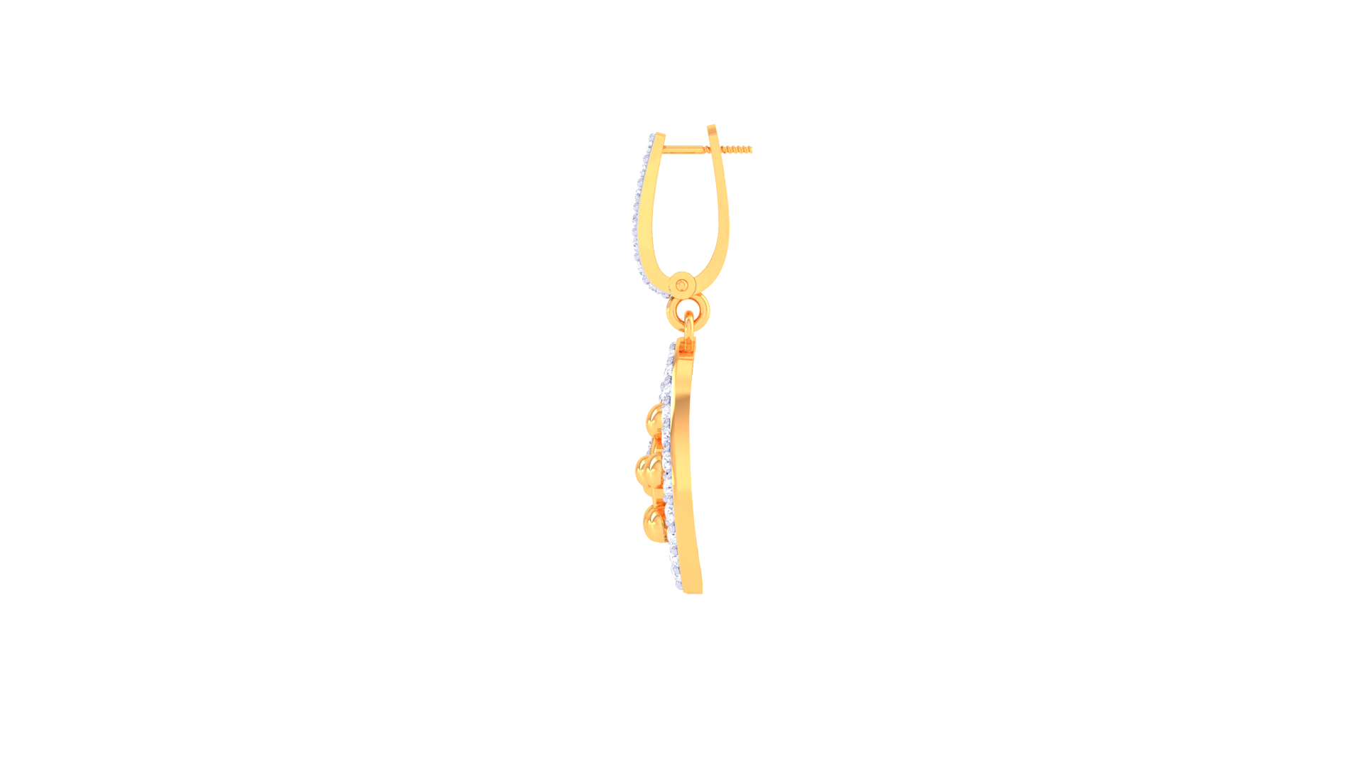 A diamond-studded vertical bar connects the drop to the ear, offering graceful movement and extra sparkle.