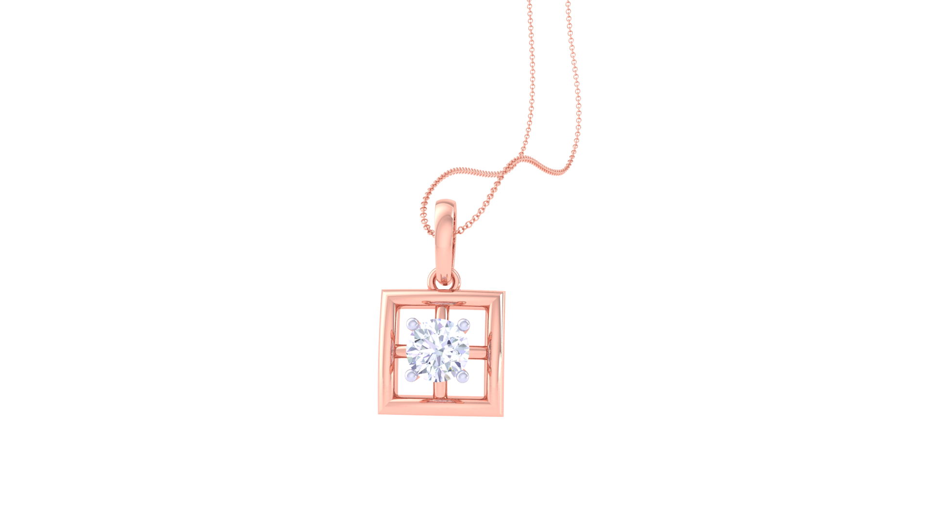 Geometric Solitaire Pendent In Luminous Gold - 0.59 Ct Round Cut Diamond