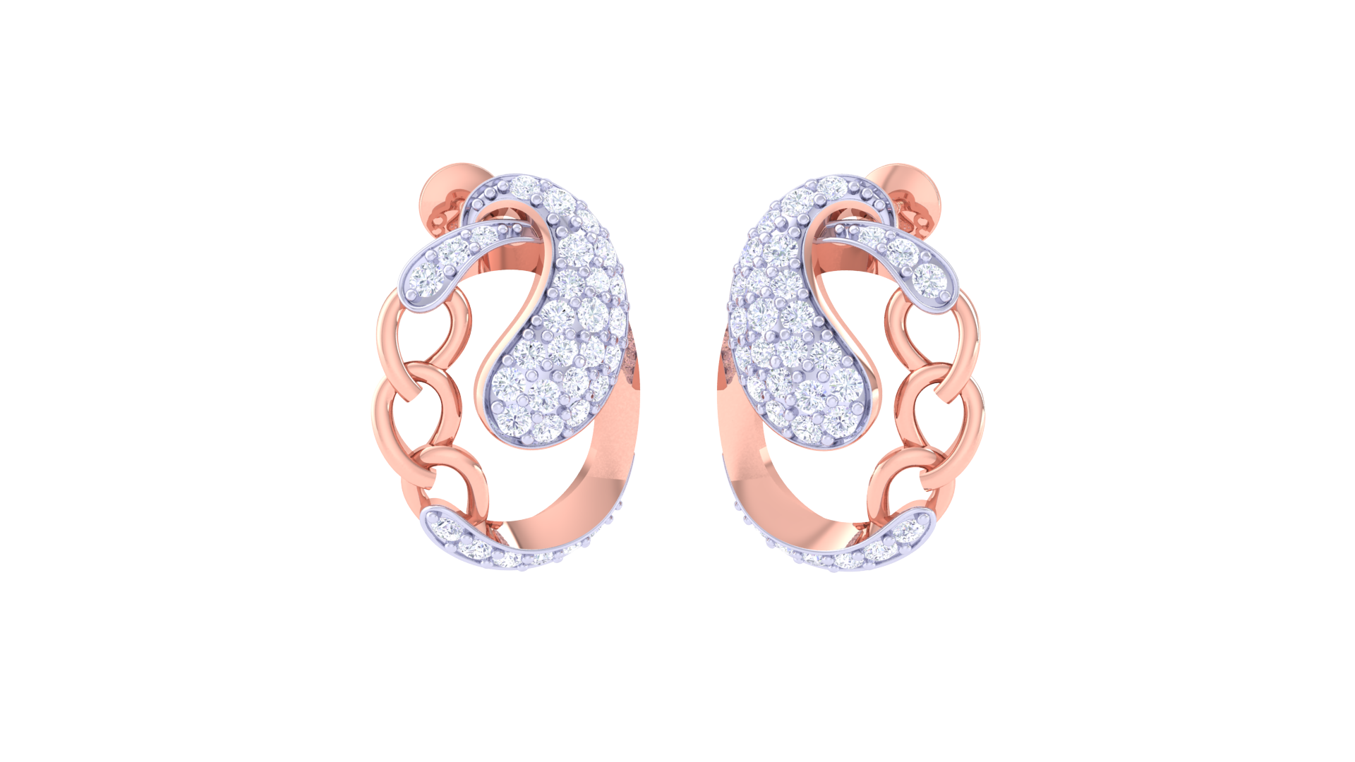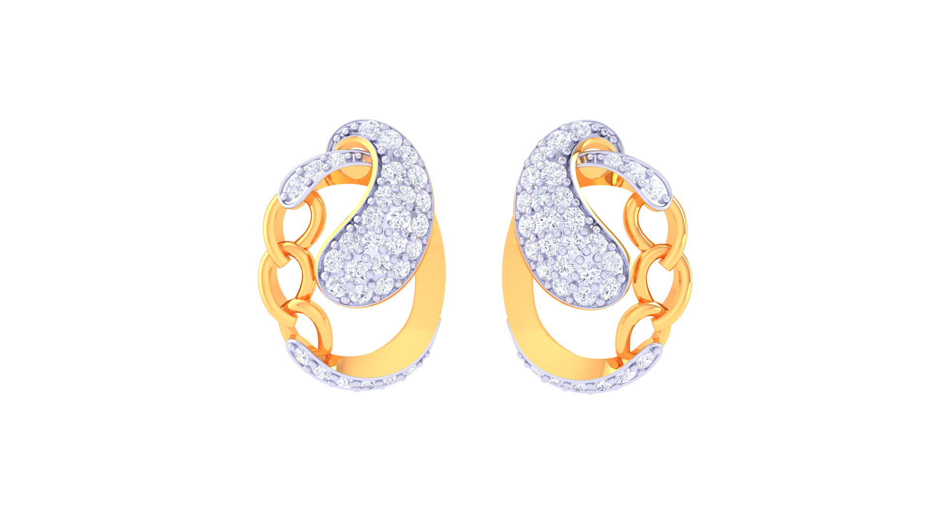 Paisley Loop Stud Earrings In Dual-Tone Gold Finish - 0.58 Ct Diamonds