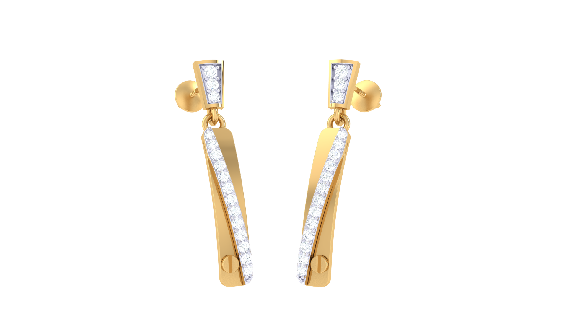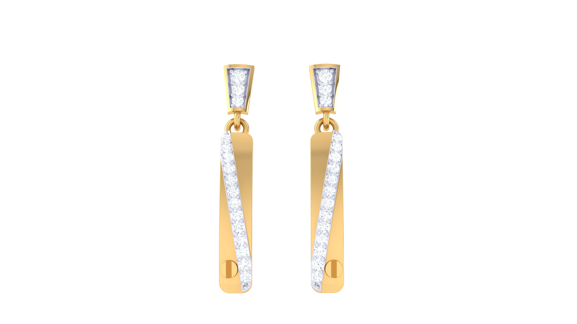 Each earring features a sleek, tapered bar design adorned with a linear arrangement of sparkling white diamonds totaling 0.21 carats.