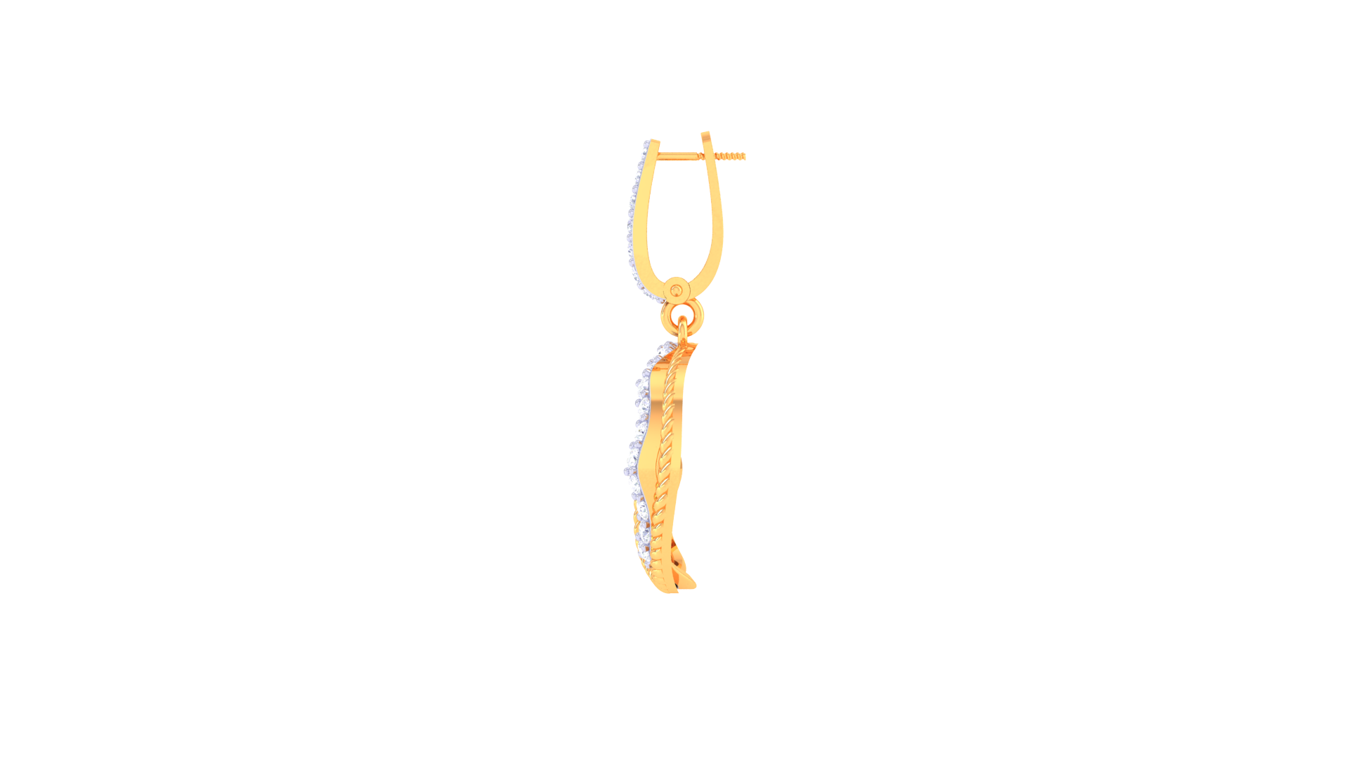 Suspended from a diamond-studded vertical bar, the design offers graceful movement and timeless sophistication.