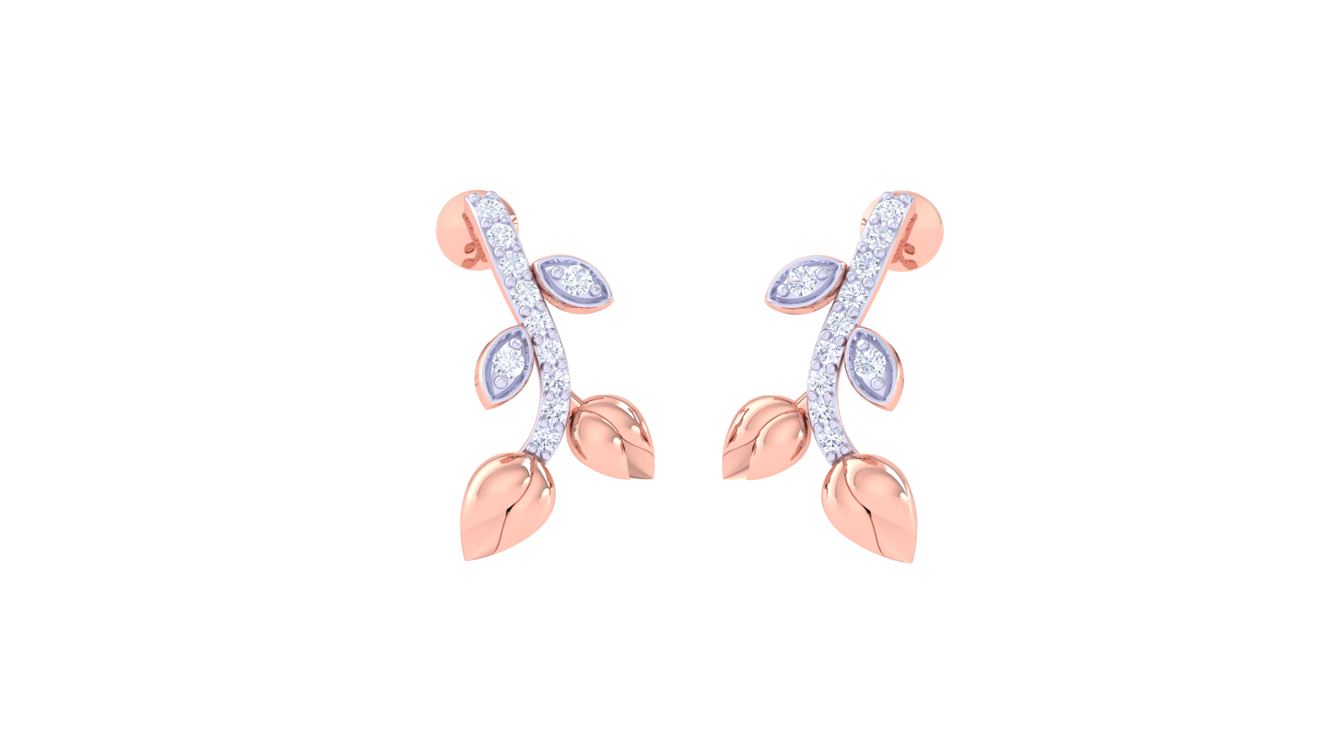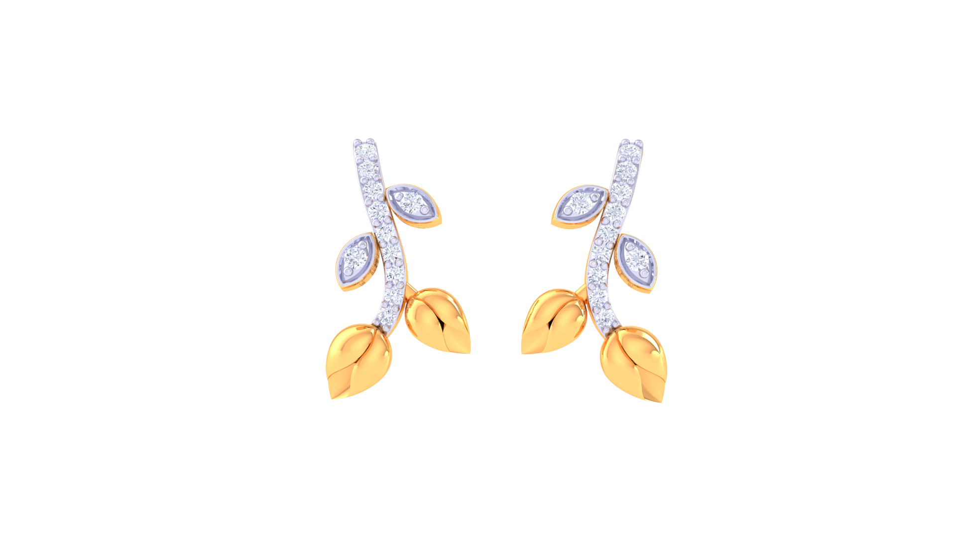 Morning Dew Leaves Stud Earrings In Gold - 0.18 Ct Diamonds