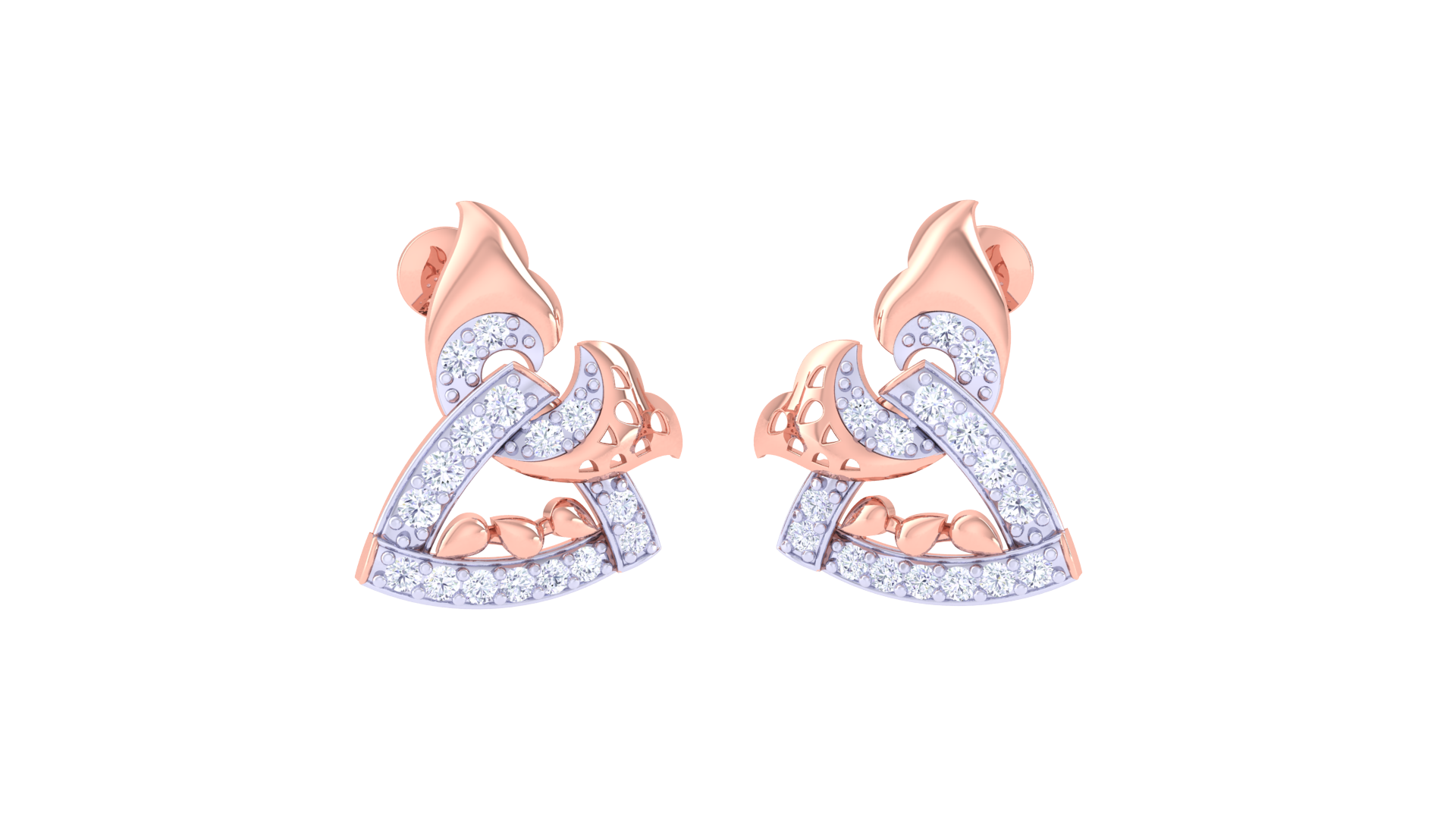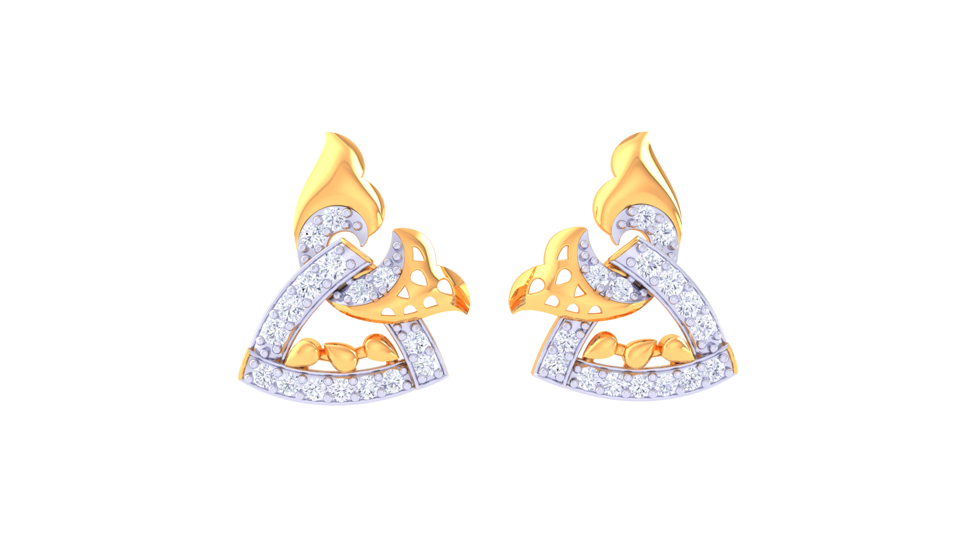 Flame & Feather Stud Earrings In Gold - 0.31 Ct Sparking Diamonds