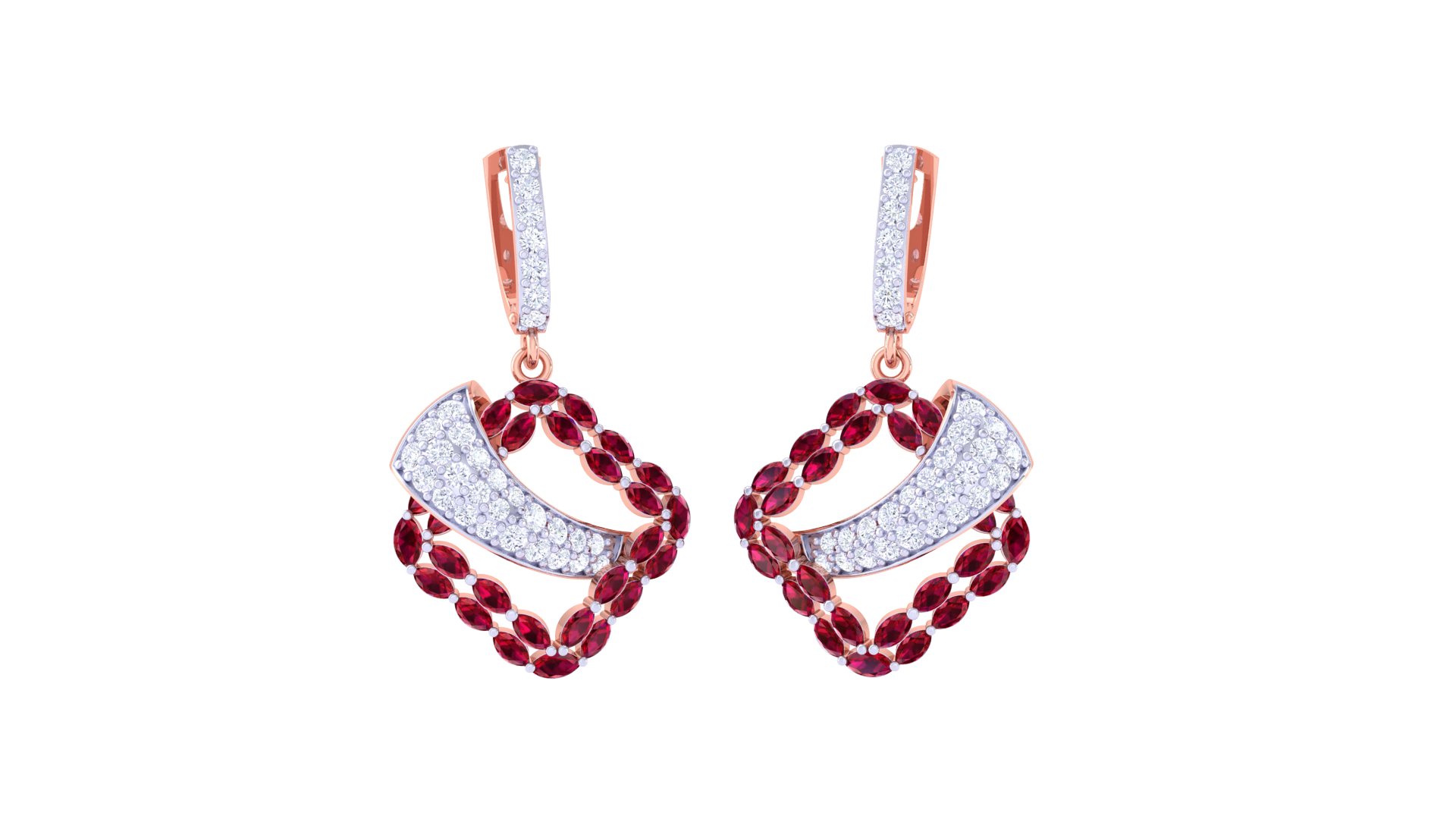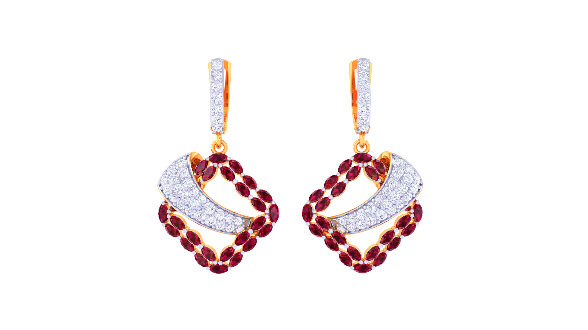 Crimson Wave Hoop Earrings In Gold - 1.46 Ct Diamond & Ruby