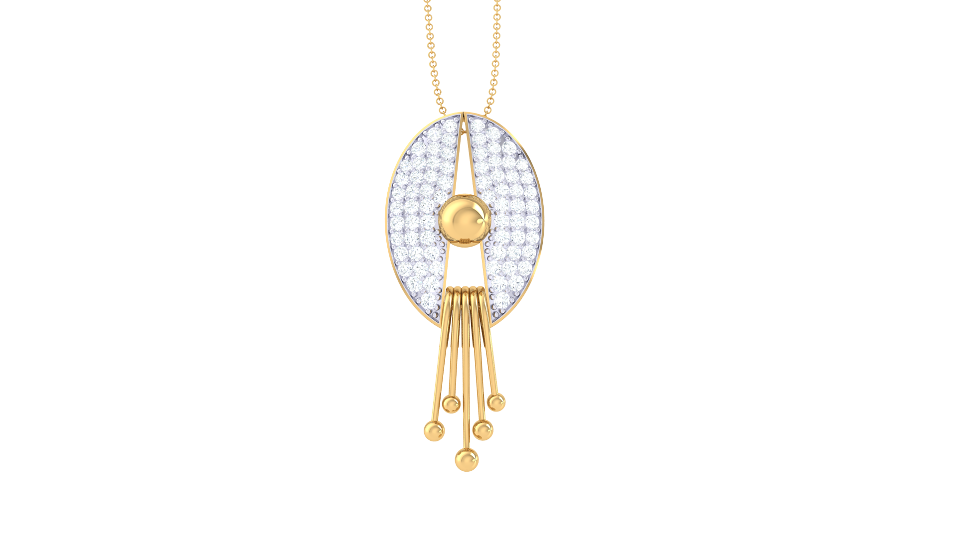 Crafted in 2.06 grams of gold, the oval-shaped pendant features a central polished gold sphere flanked by pavé-set diamonds totaling 0.54 carats.