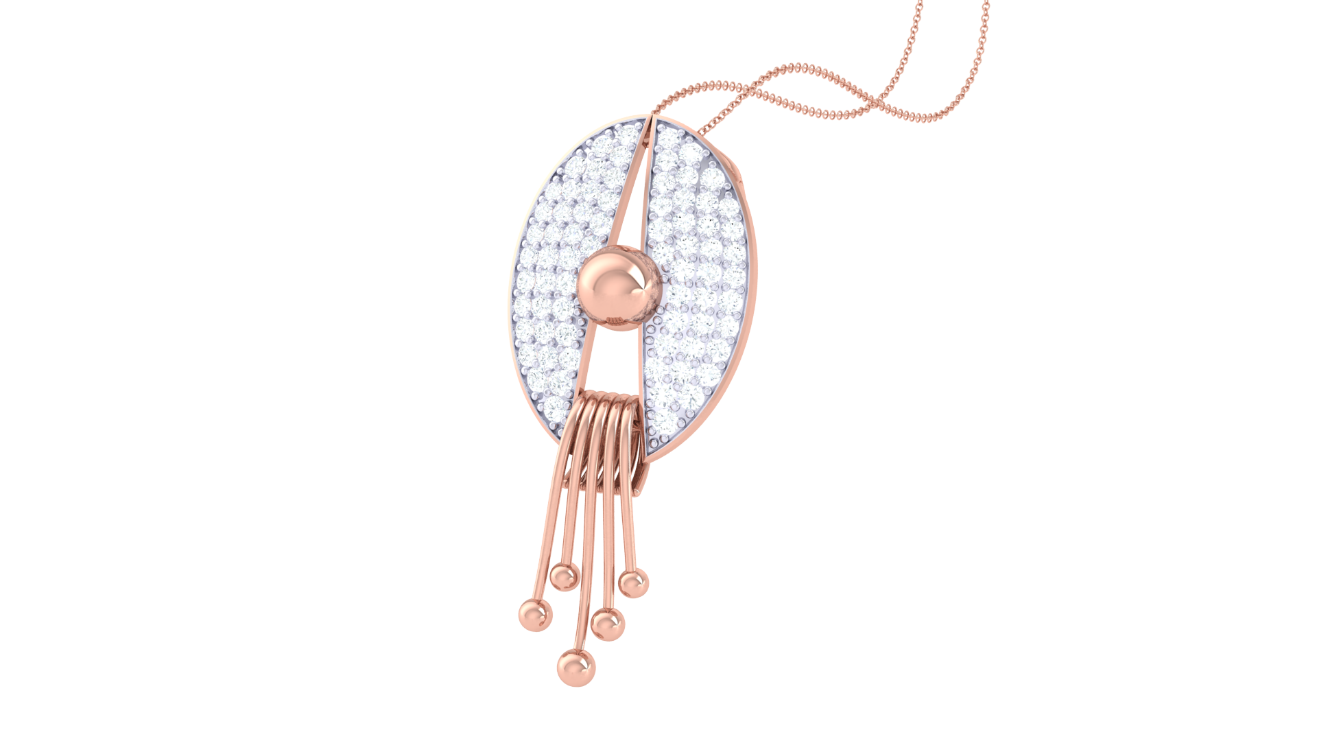 Sculptural Oval Gold Pendant - 0.54 Ct Pave Set Diamonds