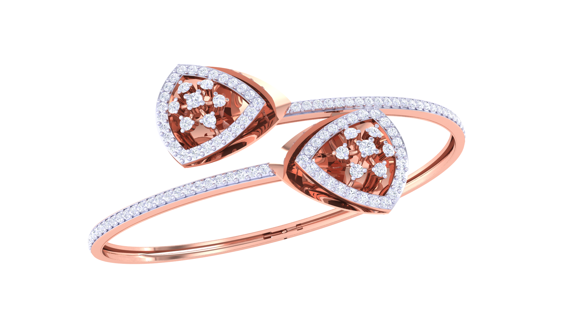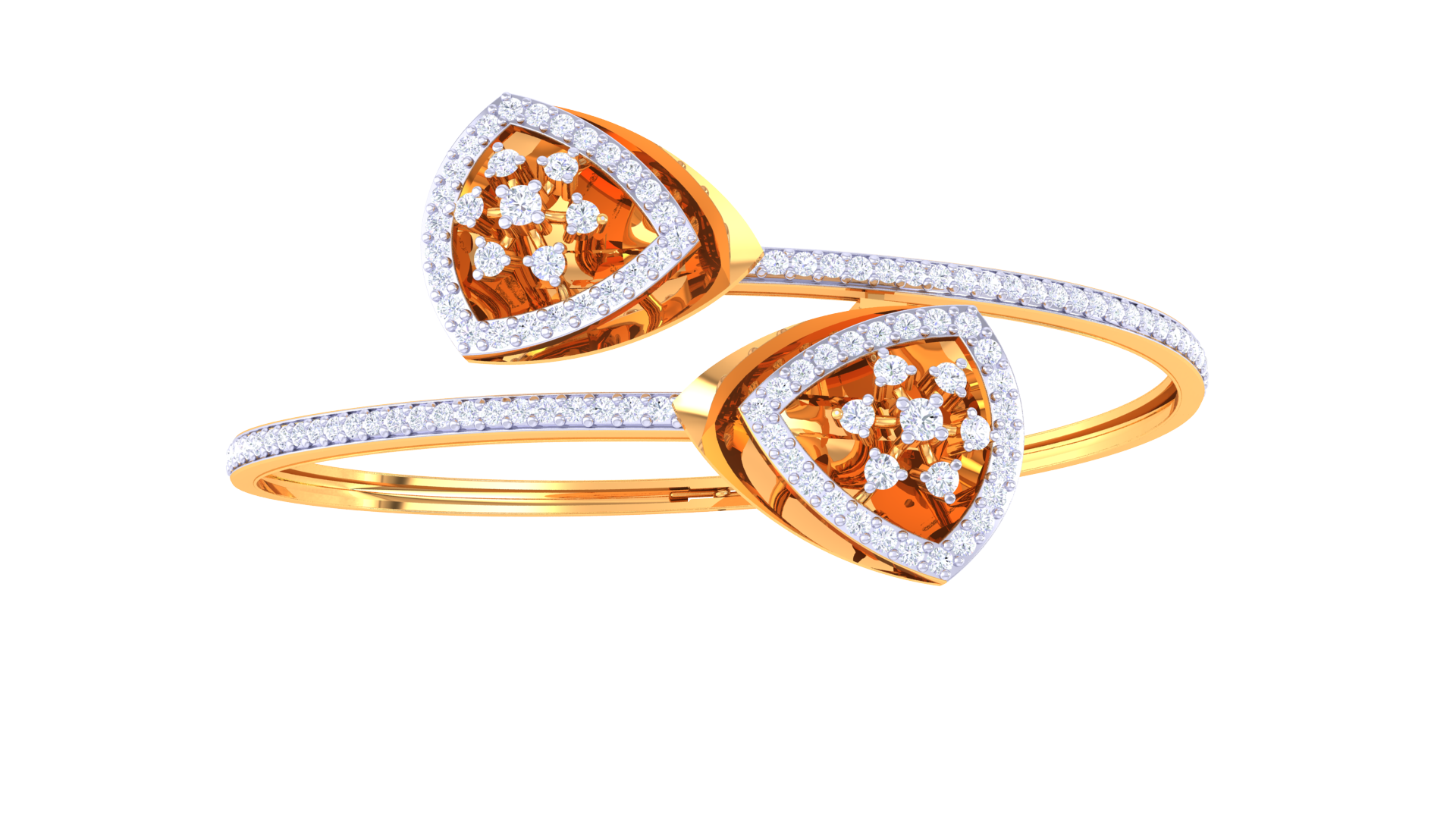 Twin Triangle Gold Bracelet With Floral Clusters - 1.35 Ct Dazzling Diamonds