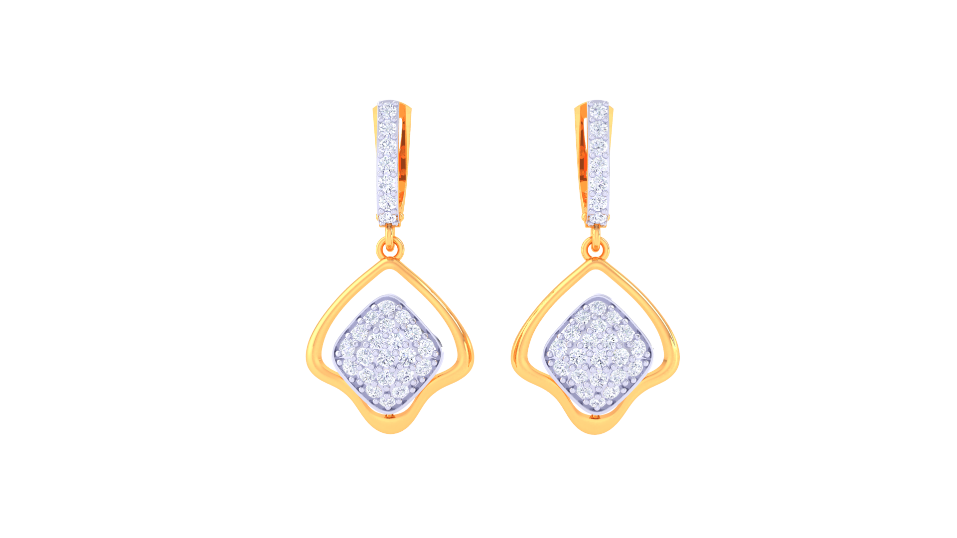 Crafted in 3.55 grams of gold, these geometric drop earrings offer a sleek fusion of symmetry and sparkle.