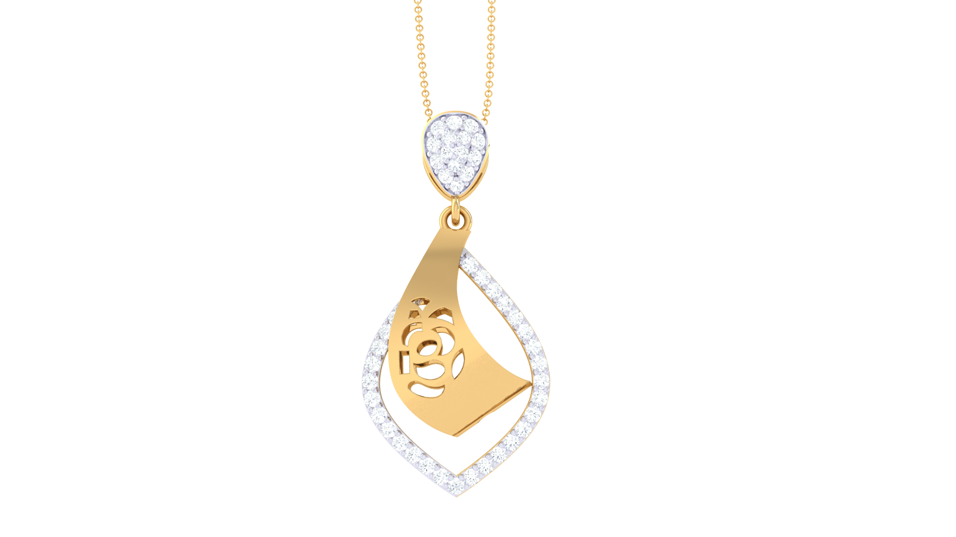 This 1.60 g gold pendant features a graceful teardrop silhouette, outlined with 0.34 carats of brilliant-cut diamonds.