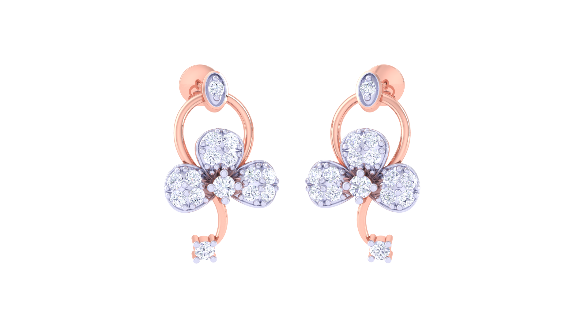 Each piece features a graceful clover motif, with three diamond-encrusted petals encircling a central stone, totaling 0.32 carats of dazzling brilliance.