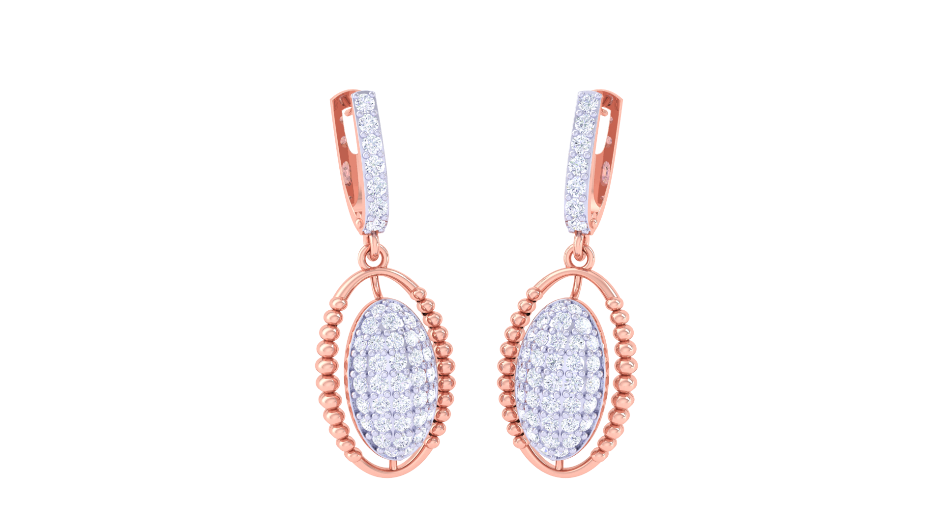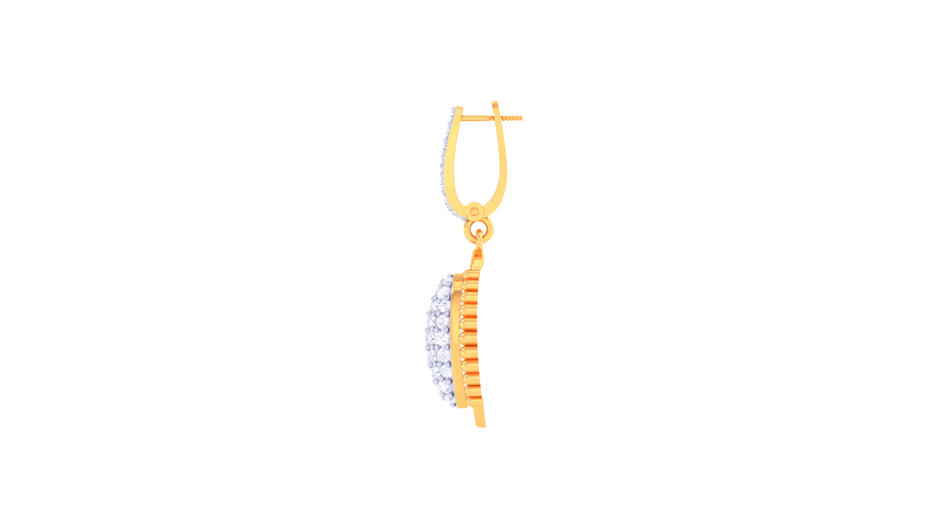A diamond-studded vertical bar connects the pendant to the earlobe, enhancing the overall brilliance.