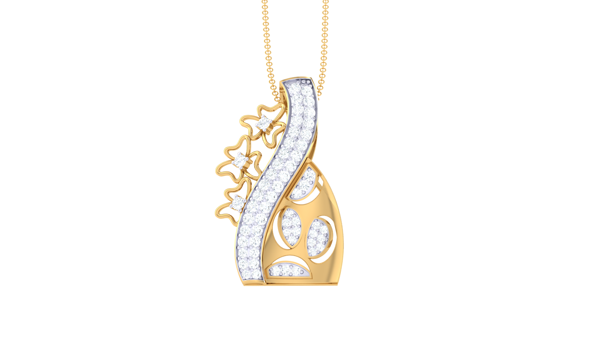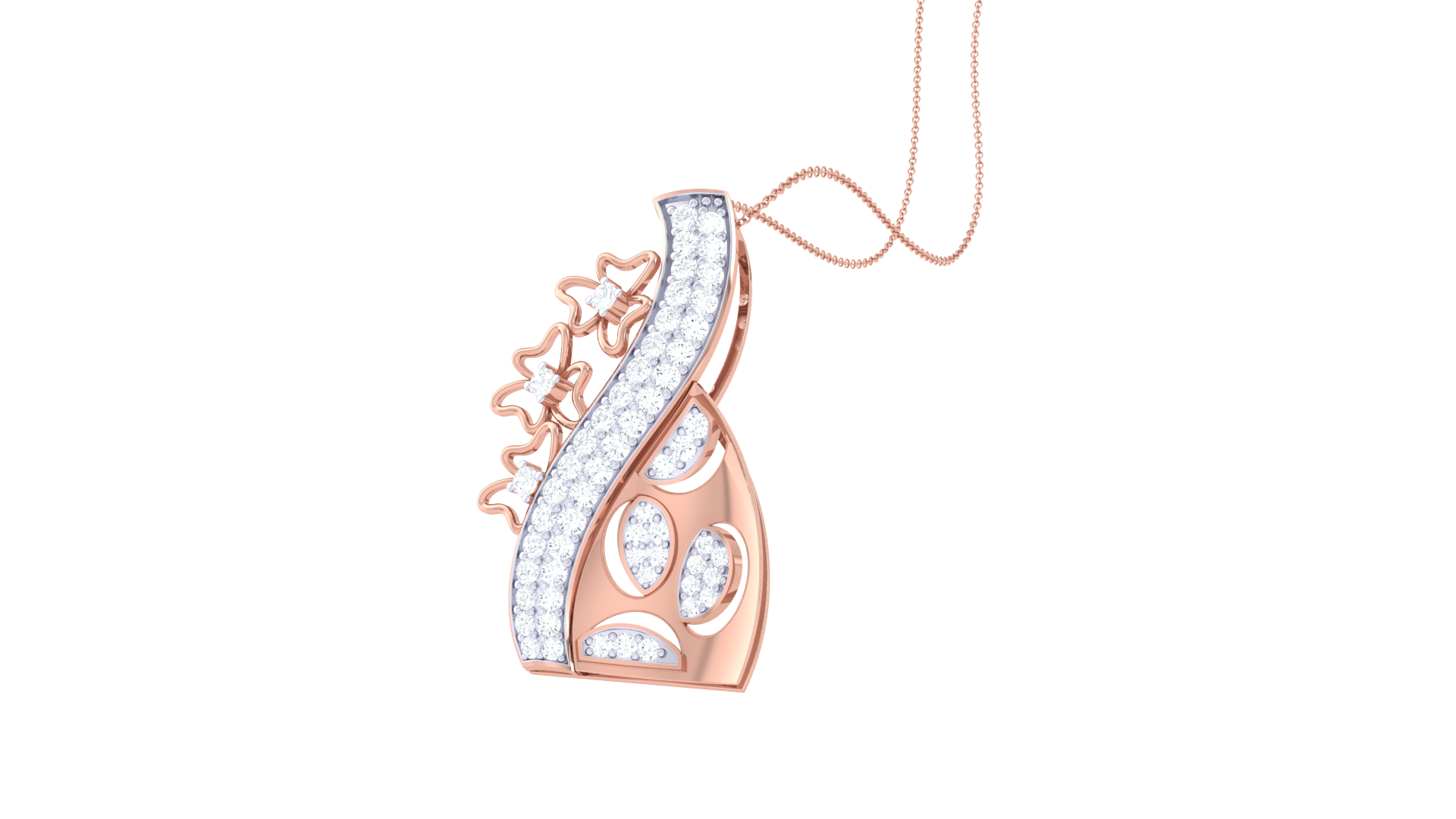 This pendant necklace showcases a graceful fusion of organic form and radiant sparkle.