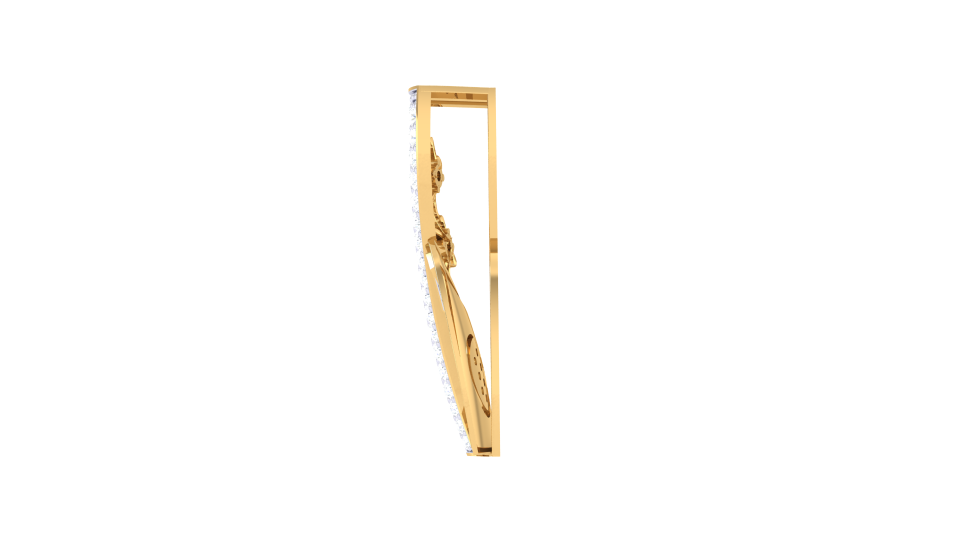 Sculpted in 2.01 grams of gold, the elongated design features a curved diamond-studded line dividing two distinct sections: one with three leaf-shaped cutouts filled with diamonds, and the other with a delicate vine-like motif.