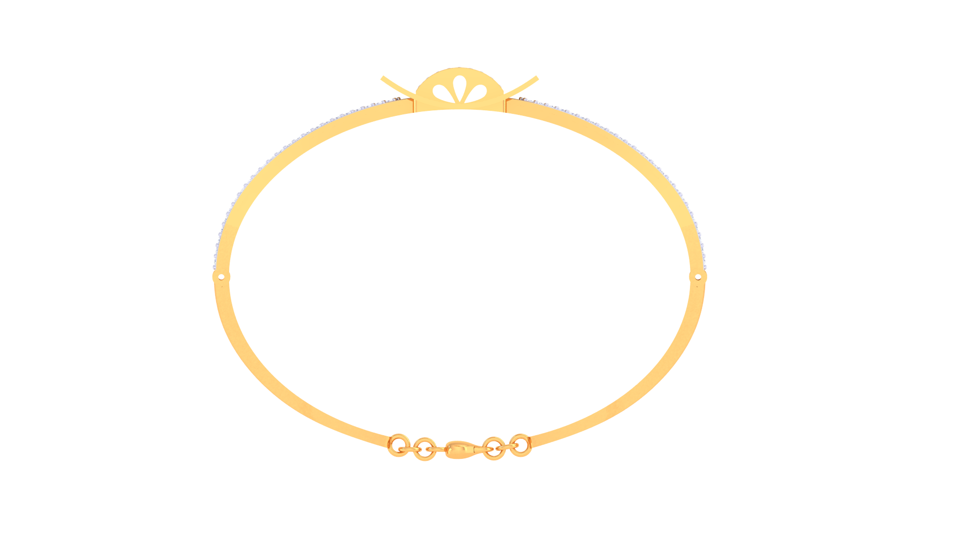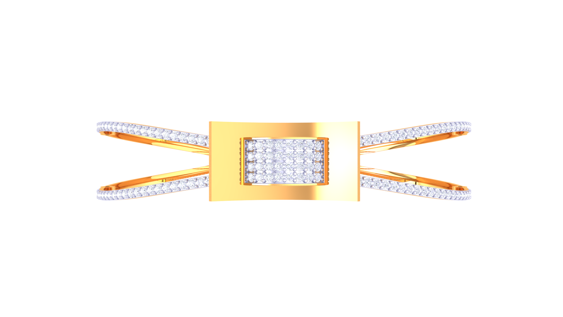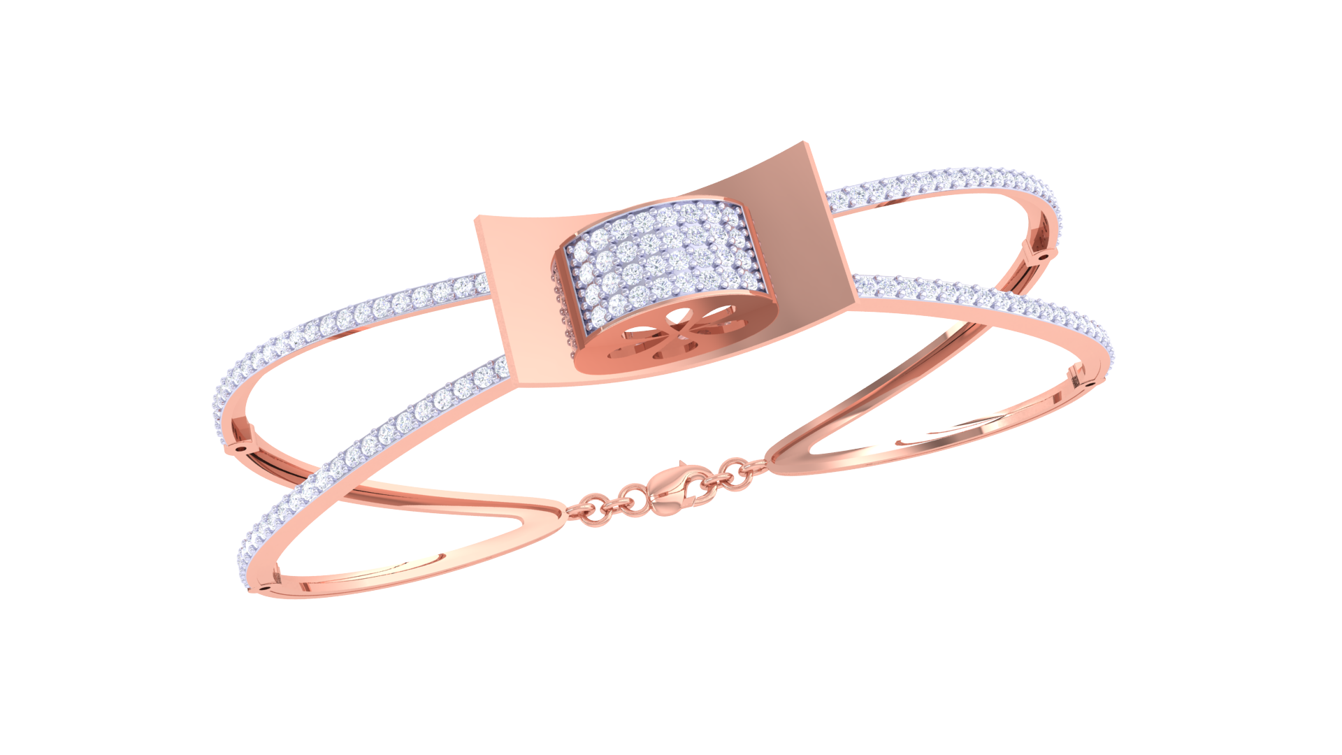 The dual-strand band, paved with shimmering white stones, adds symmetry and brilliance to the piece.