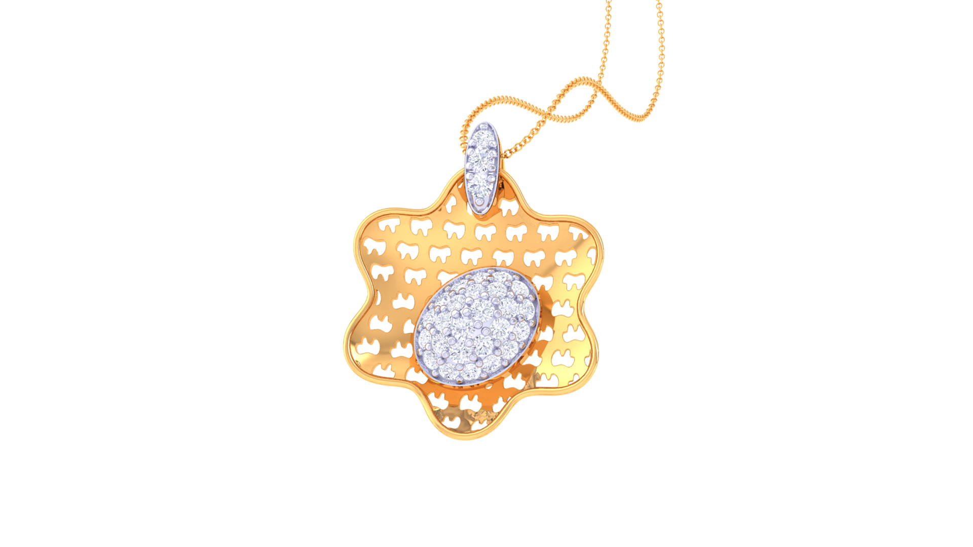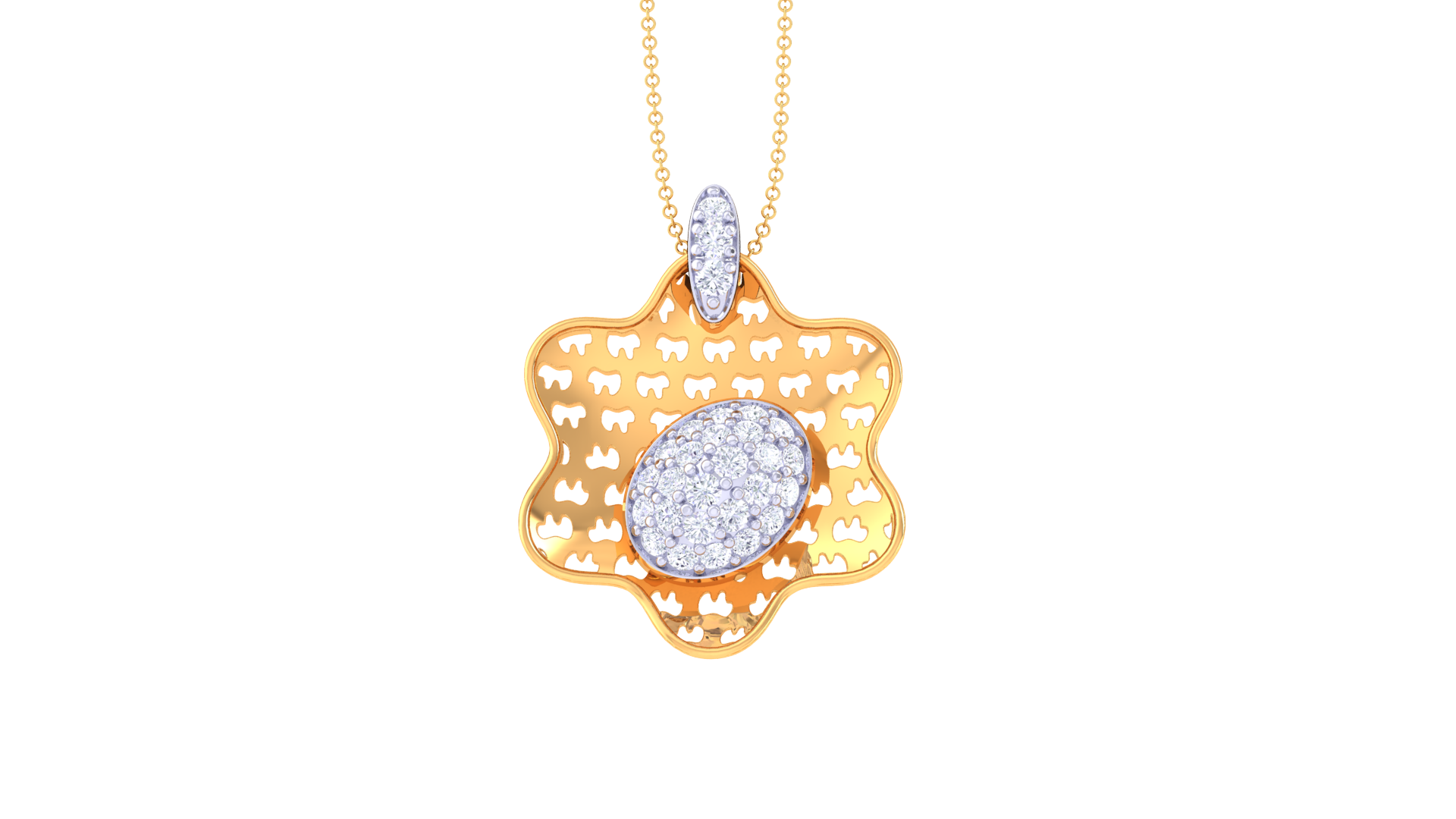 Crafted from 1.68 grams of gleaming gold, the piece is finished with a diamond-studded bail and suspended from a fine link chain.