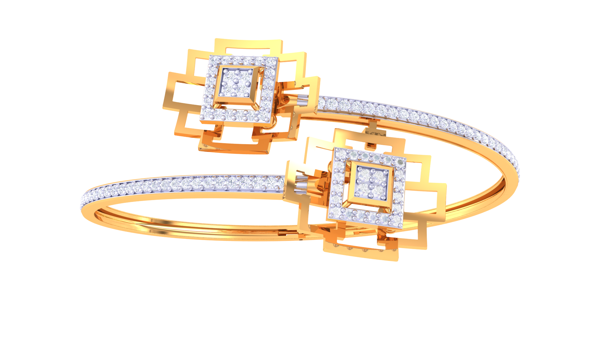 Square Motif Gold Bangles With Nested Geometry - 0.93 Ct Sparkling Diamonds