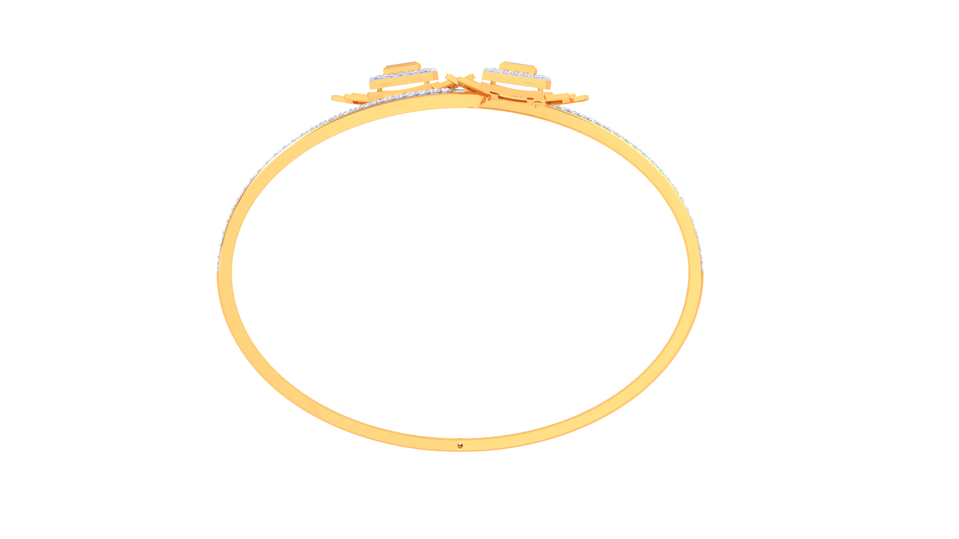Sculpted in 8.08 grams of radiant yellow gold, this pair of bangles showcases a striking interplay of geometry and brilliance.