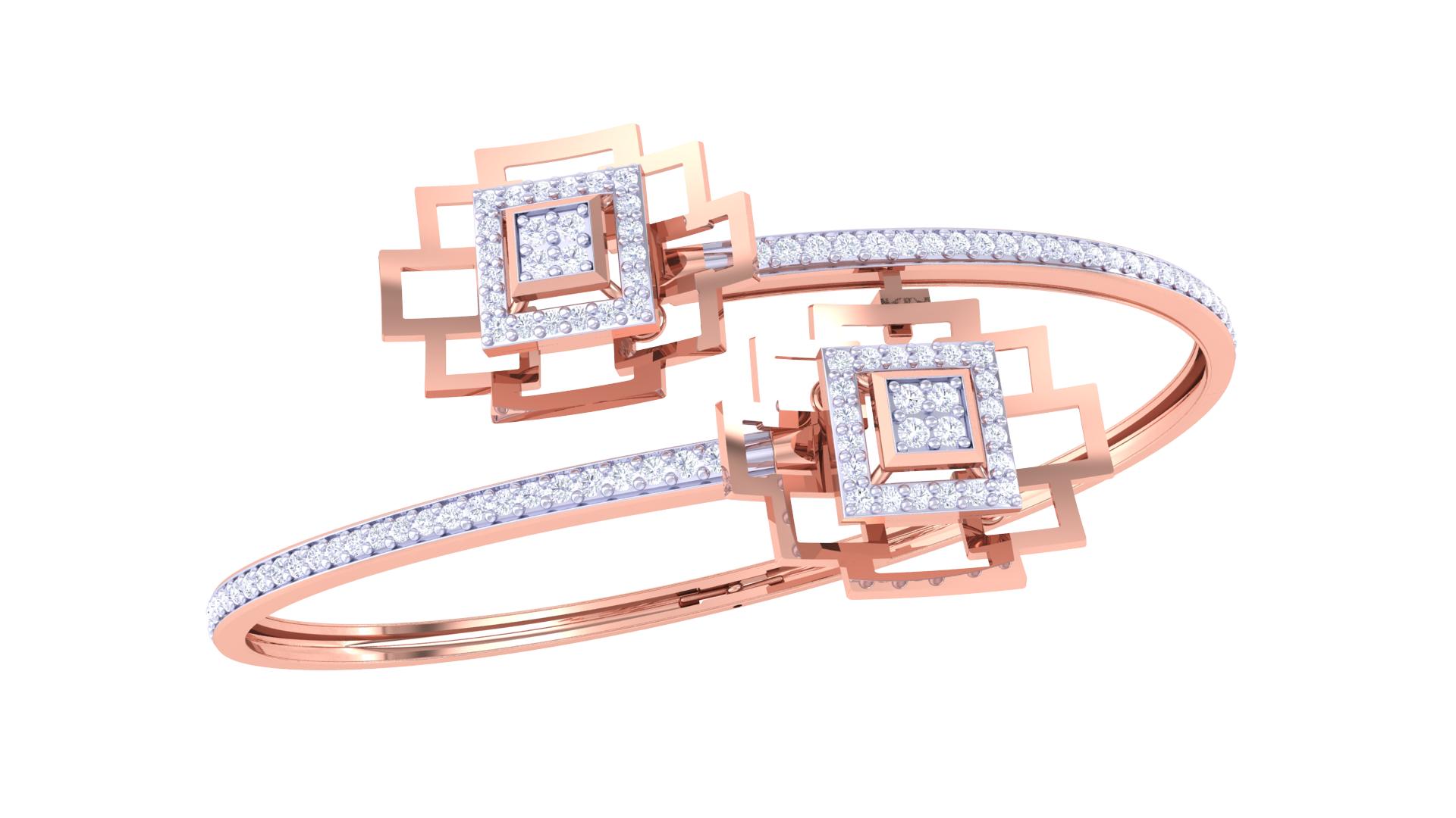 Each bangle features a central square motif composed of nested diamond-studded layers, creating a dimensional and luxurious effect.