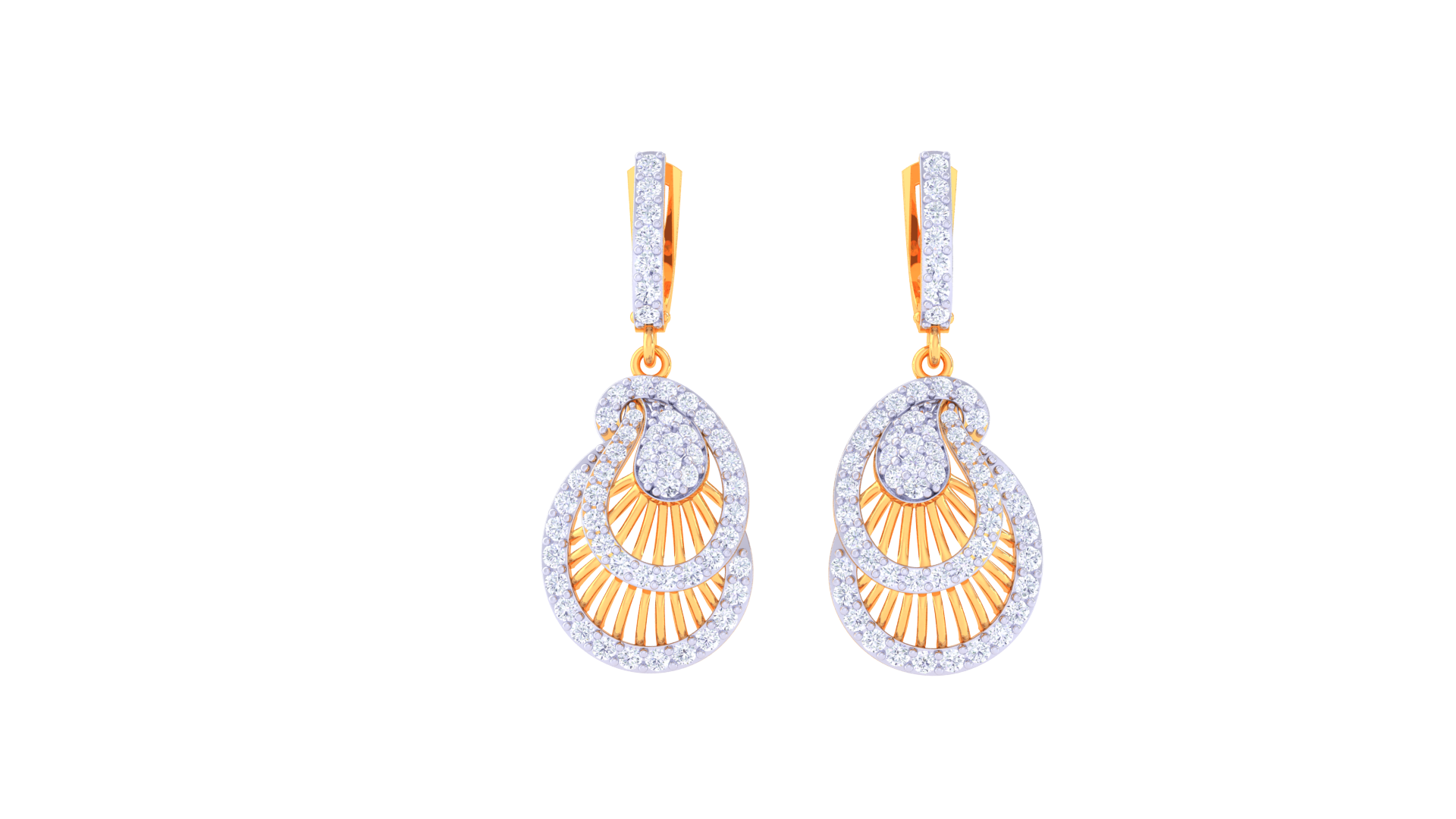 Radiant Fan Motif Earrings in Gold - 0.96 Ct Sparkig Diamonds
