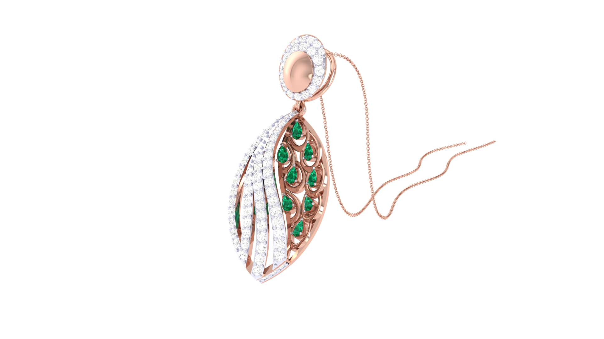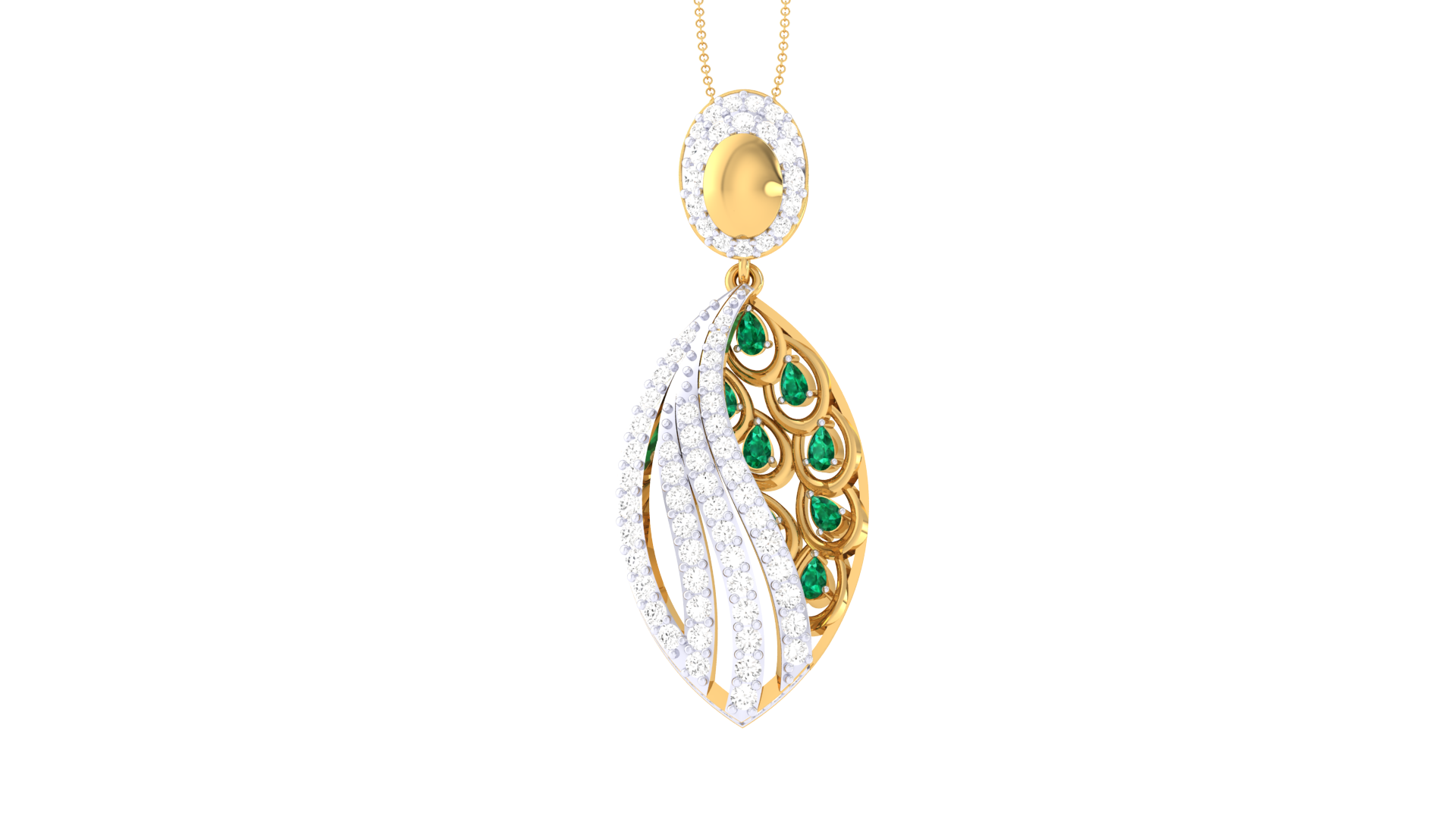 Peacock-Inspired Teardrop Pendant In Gold - 0.82 Ct Brilliant Cut Diamonds